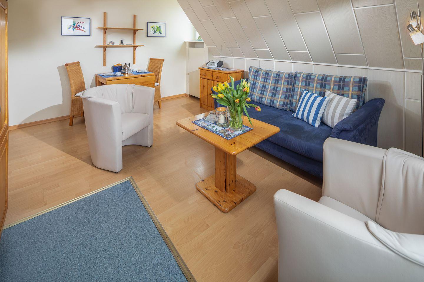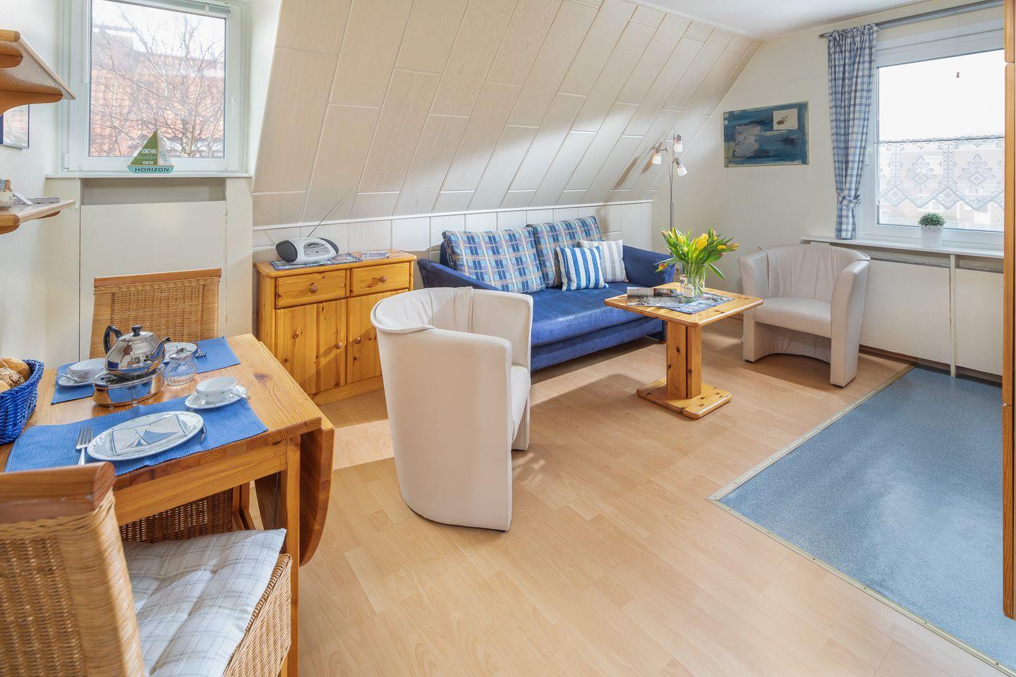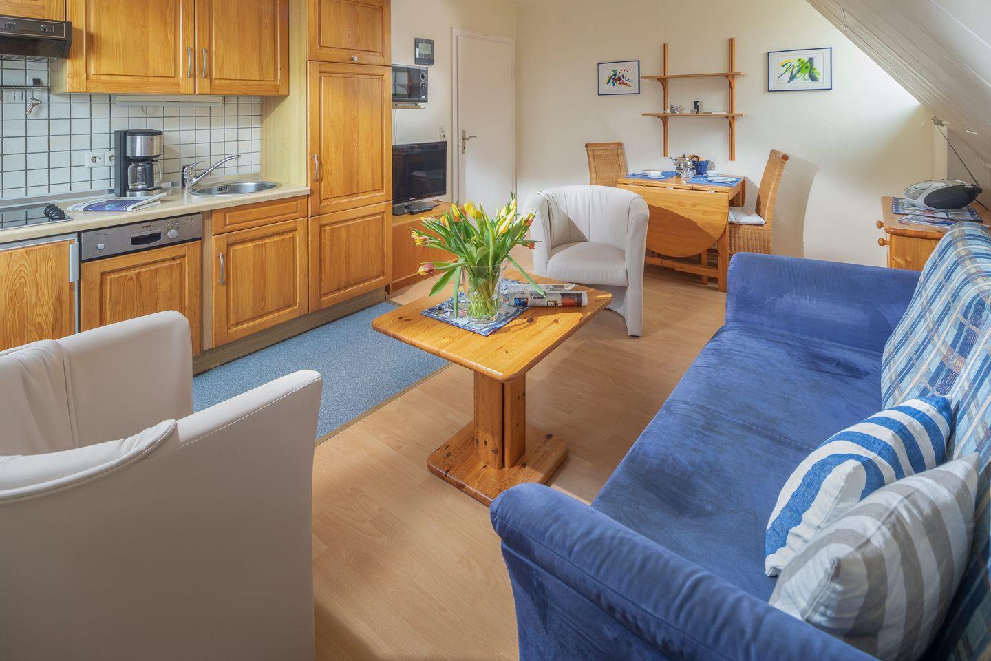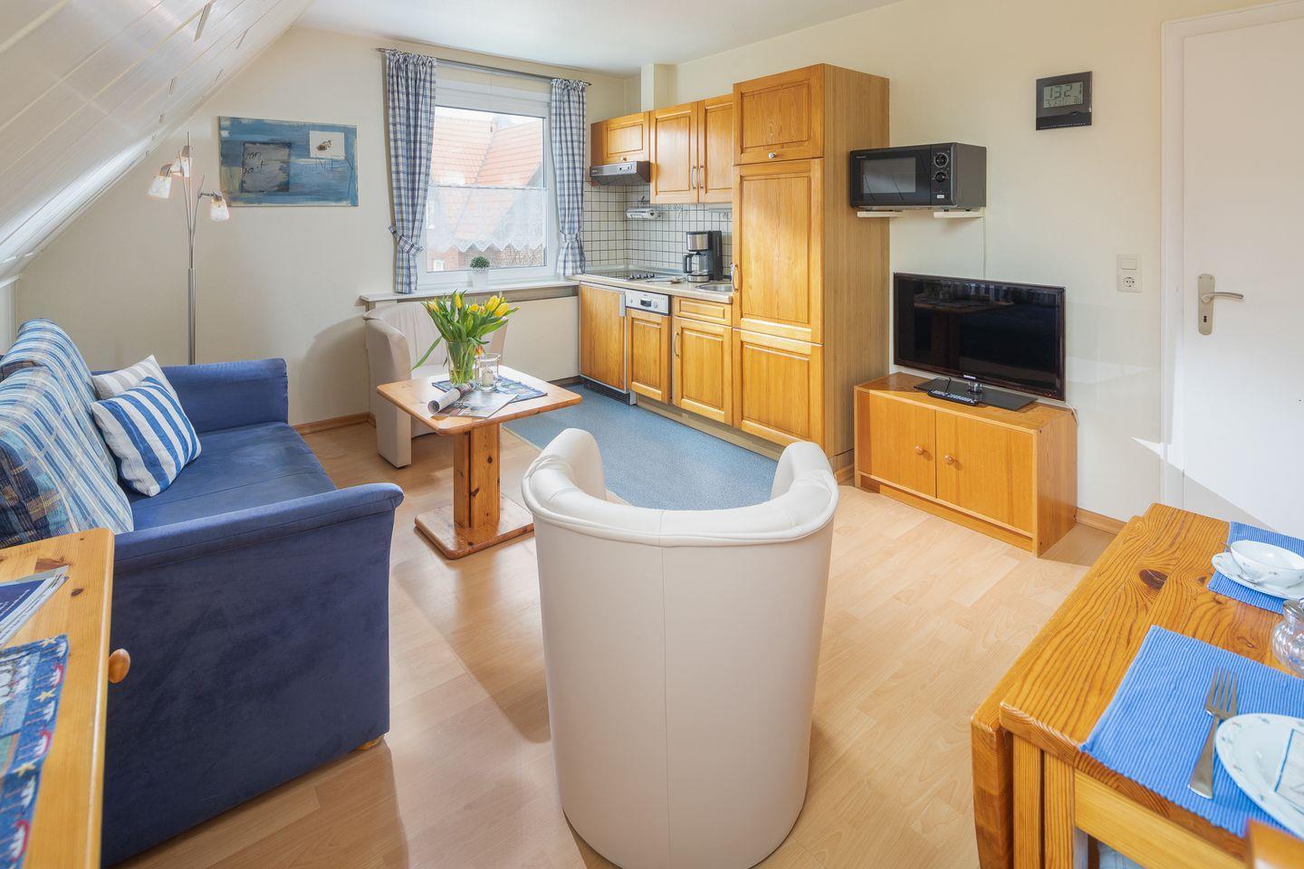 Ruhige 2-Raum-Wohnung in Norderney nahe der Dünenlandschaft mit eigenem Parkplatz und moderner Ausstattung.