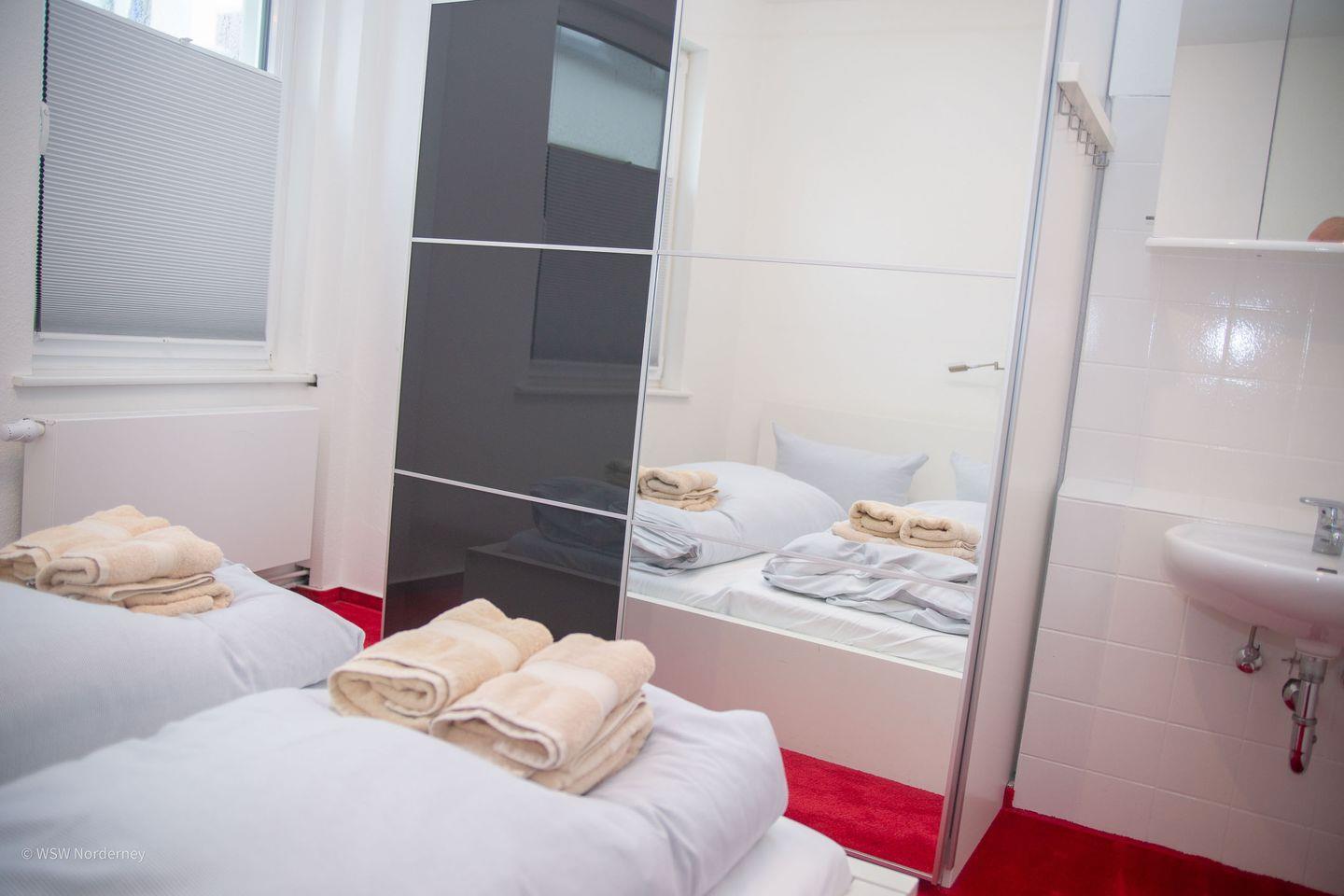 Die Wohnung Westwind im Haus Portscher bietet zentralen Komfort mit Balkon in Norderney.