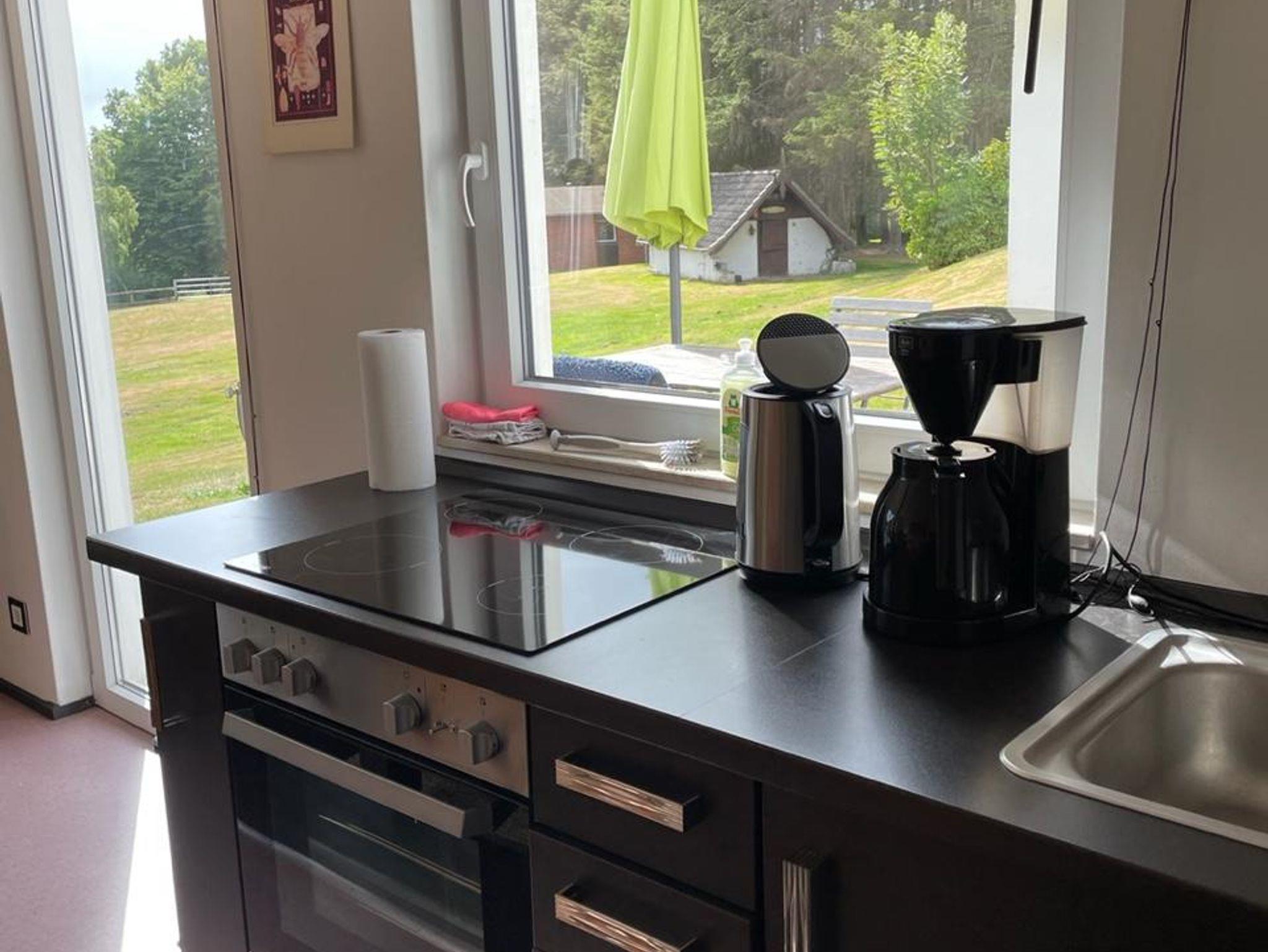 Dieses barrierefreie Apartment bietet auf 65qm komfortablen Wohnraum für einen entspannten Aufenthalt. Es verfügt über ein Schlafzimmer mit zwei Betten sowie eine zusätzliche Schlafcouch und eignet sich ideal für Paare oder kleine Familien. Bettwäsche und Handtücher sind im Aufenthalt inbegriffen. Die gut ausgestattete Küche mit Geschirrspülmaschine, Backofen und Herd ermöglicht unkomplizierte Selbstverpflegung. Das moderne Duschbad ist mit einer ebenerdigen Dusche ausgestattet. Für angenehme Wärme sorgen eine Zentralheizung und ein Kaminofen. Die eigene Südterrasse mit Blick auf die Wiese und gemütlichen Gartenmöbeln lädt zum Verweilen im Freien ein.