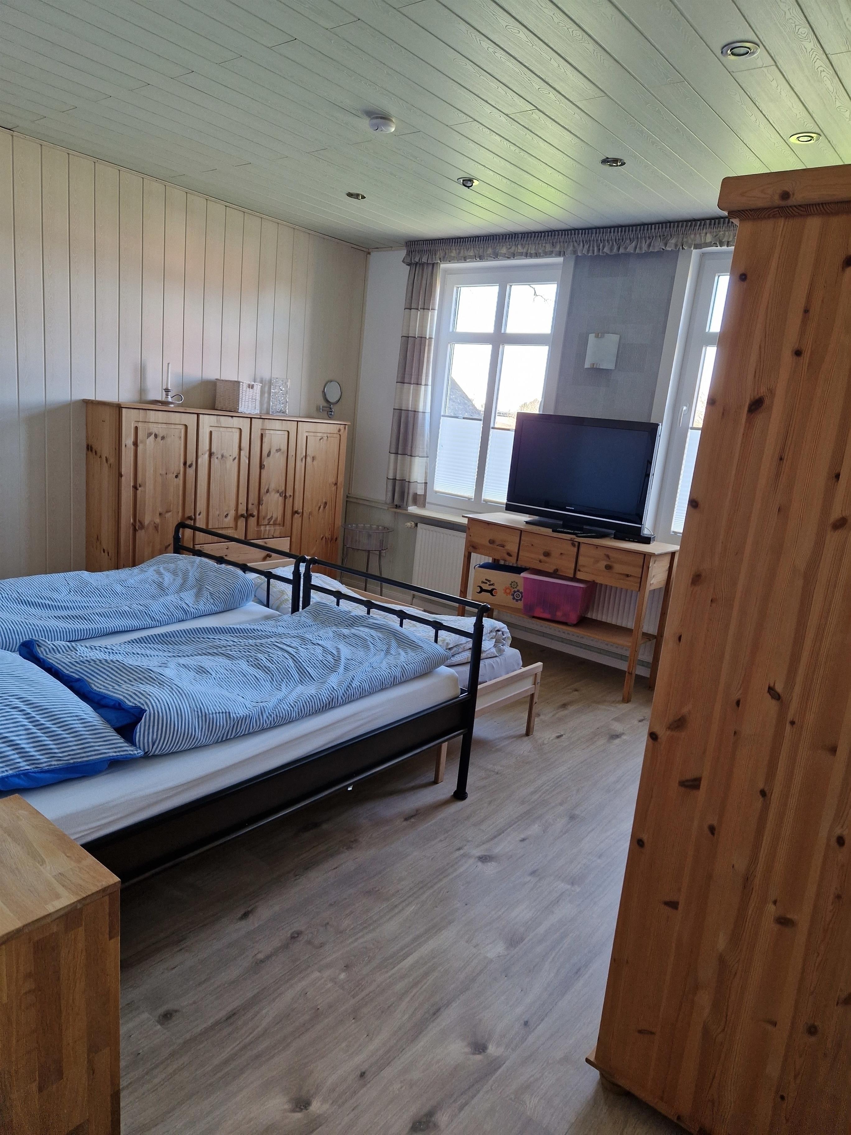 2. Schlafzimmer mit 2 zusammenstehenden Einzelbetten die auch getrennt stehen können ( Rausfallschutz für Kinder vorhanden) mit TV