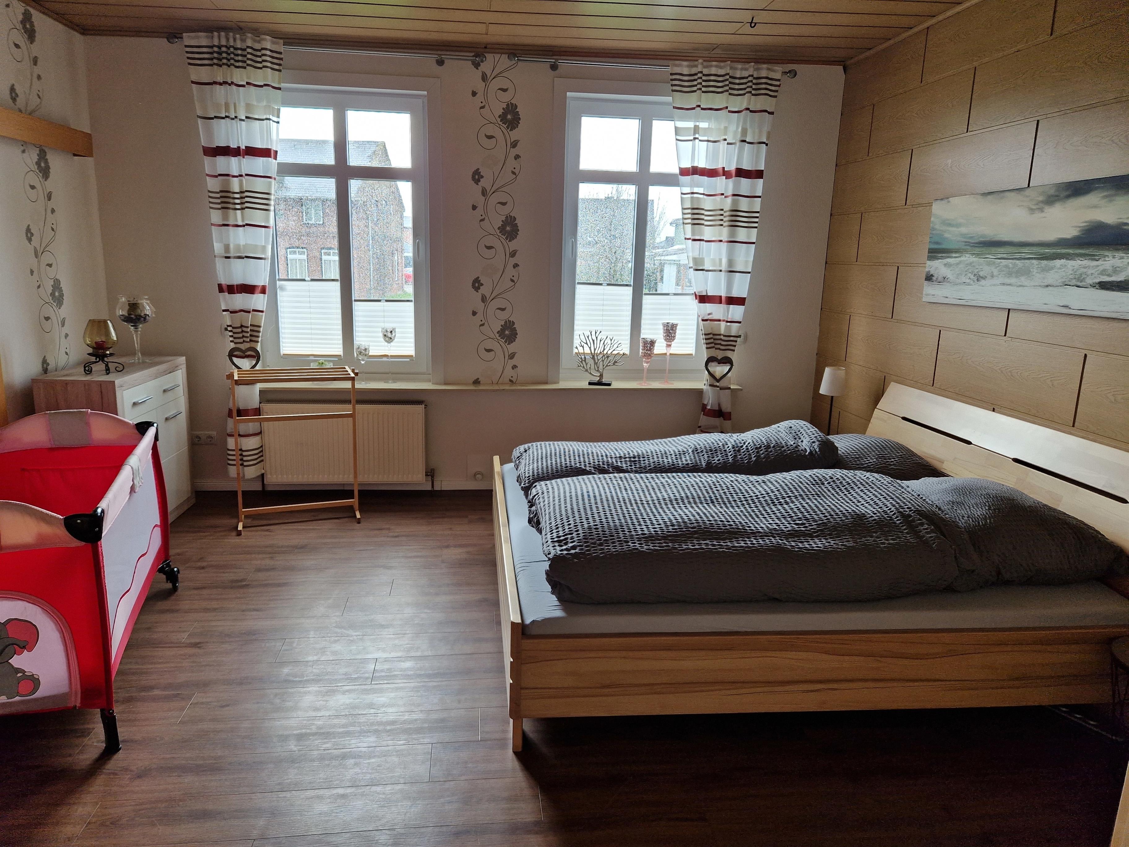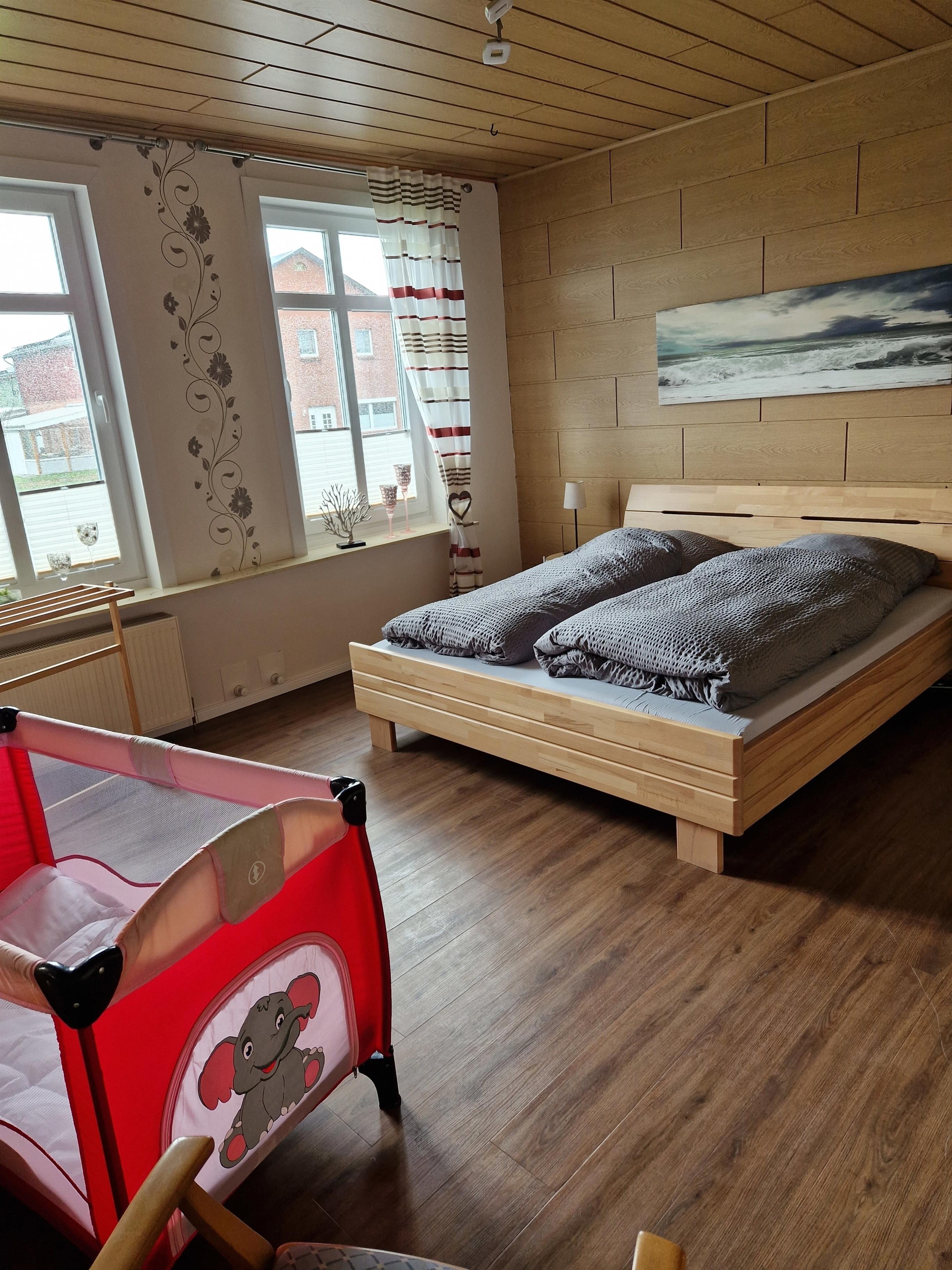1. Schlafzimmer mit Doppelbett Beistellbett zustallbar