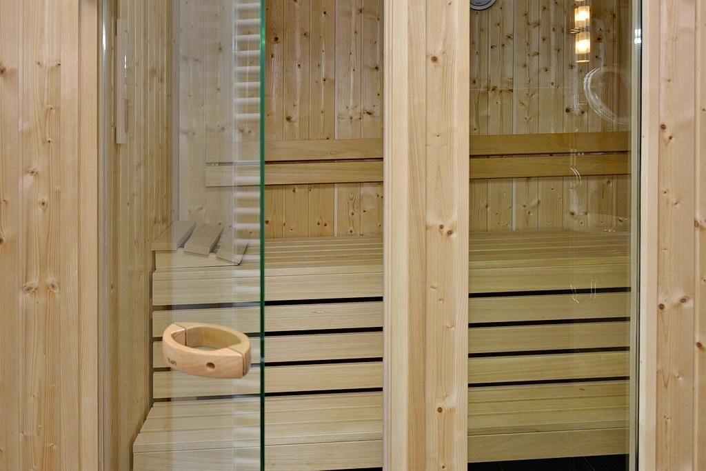 Im komfortablen Badezimmer mit begehbarer Dusche, WC und Bidet, Föhn und Kosmetikspiegel befindet sich eine eigene Sauna zur vollkommenen Entspannung in privater Atmosphäre. Das Apartment verfügt außerdem über eine ruhig gelegene Terrasse mit Gartenmöbeln und eigenem Strandkorb.