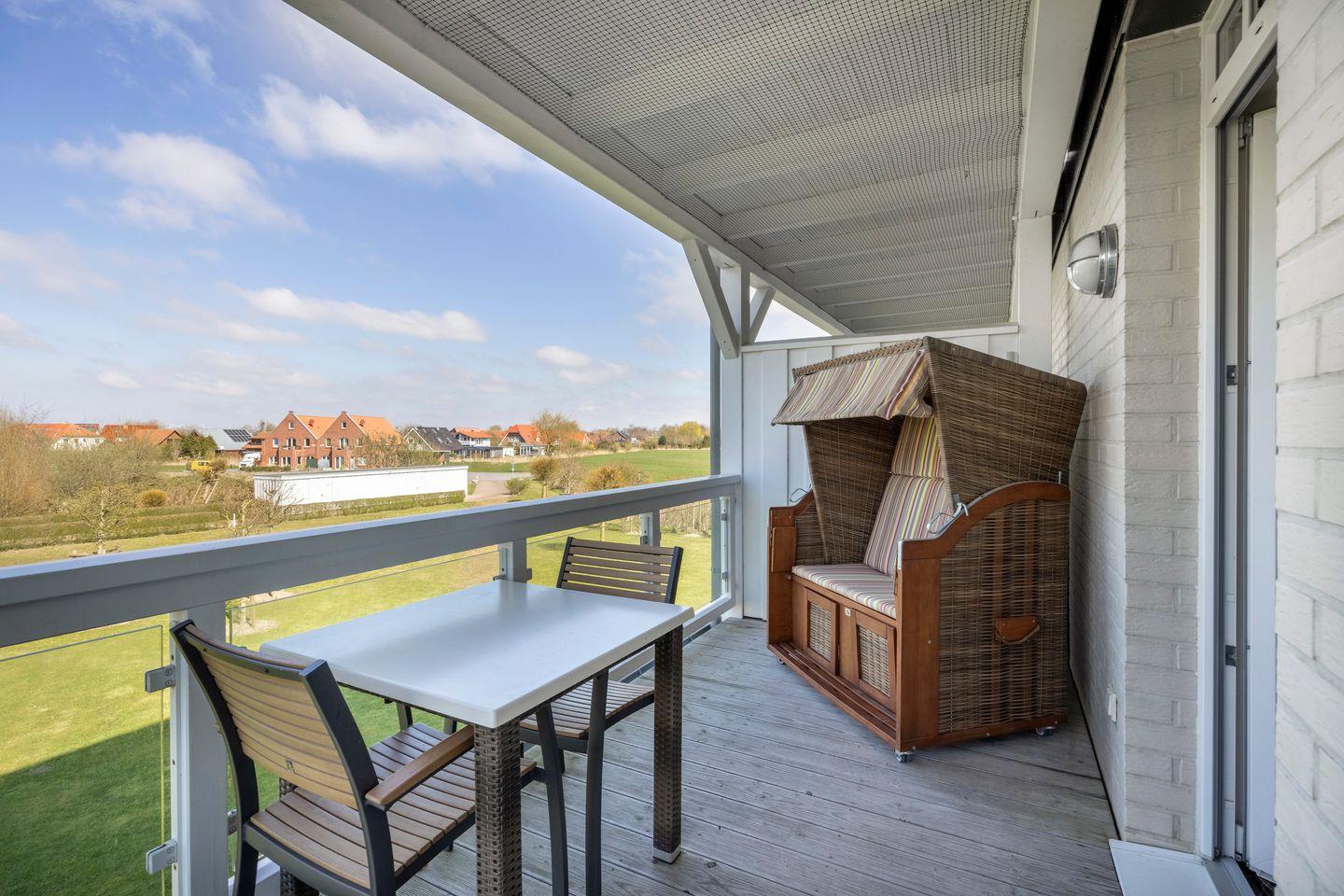 Strandnahe Ferienwohnung in Nordseebad Wremen mit Sauna, Balkon und Strandkorb für erholsame Urlaubstage.