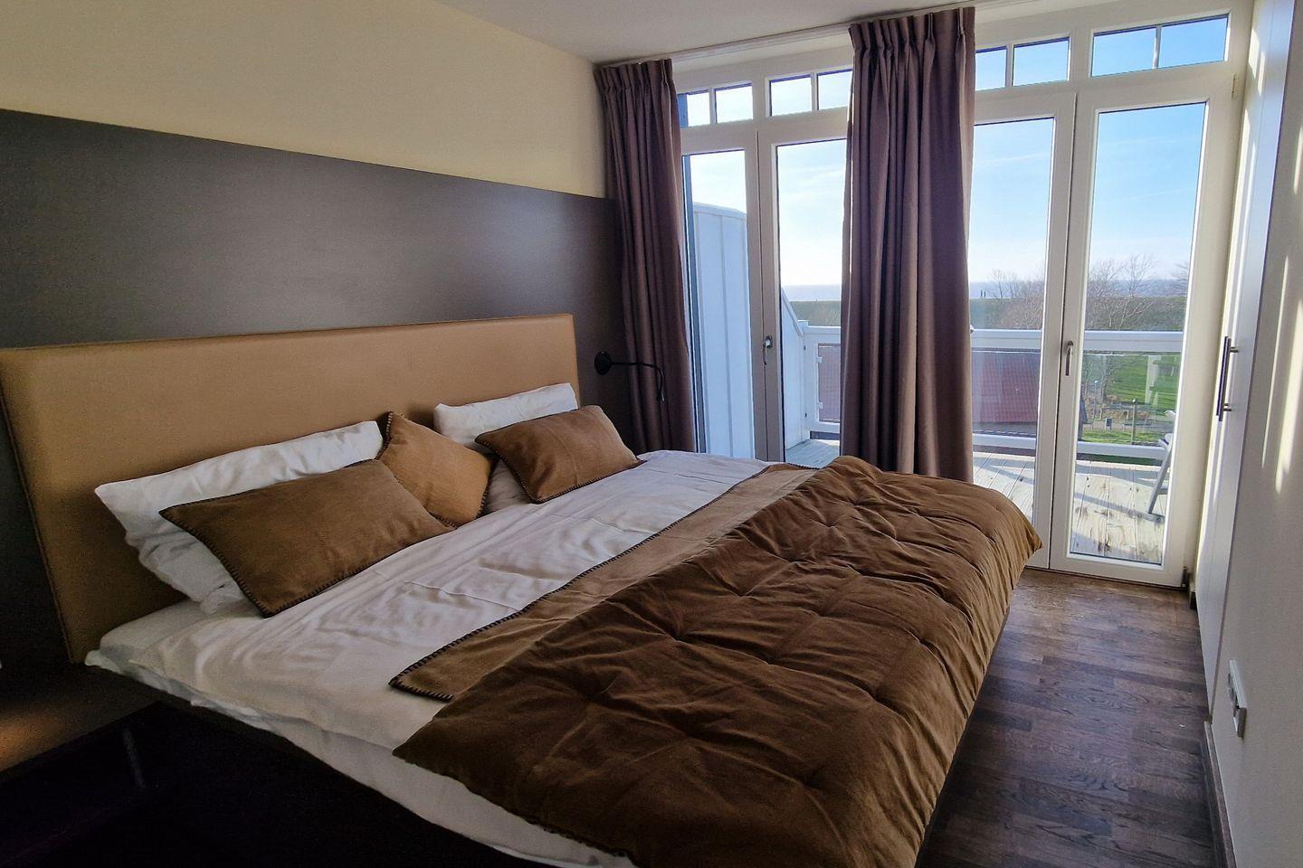 Im komfortablen Badezimmer mit begehbarer Regendusche, Doppelwaschtisch, Föhn und Kosmetikspiegel befindet sich eine eigene KLAFS-Sauna zur vollkommenen Entspannung in privater Atmosphäre. Die Wohnung verfügt über ein separates Bad mit WC und Bidet. Die beiden großzügigen Balkone dieser Dachgeschosswohnung mit Meerblick bieten euch einen perfekten Ort zum Entspannen, Genießen und Schiffe vorbeifahren sehen. Für eure Entspannung auf den Balkonen stehen euch bequeme hochwertige Liegestühle, ein Strandkorb sowie Tisch und Stühle zur Verfügung.