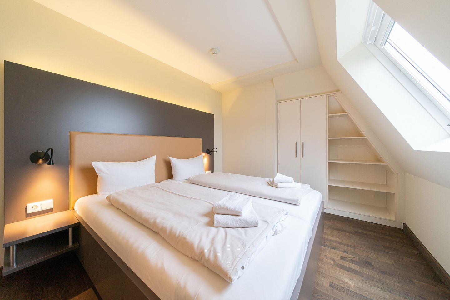 Das Nichtraucher-Apartment verfügt über kostenfreies WLAN und eine großzügig konzipierte und voll ausgestattete offene Küche mit Geschirrspüler, Kaffeemaschine, Toaster, Wasserkocher, Tiefkühlfach, Backofen und Mikrowelle. In den zwei Schlafzimmern steht euch jeweils ein Doppelbett, im Wohnbereich ein großer Flatscreen-TV, Minisafe, Telefon, eine HiFi-Anlage und ein Elektrokamin zur Verfügung. Ein Kinderbett kann gegen Entgelt aufgestellt werden und auf Wunsch könnt ihr einen Hochstuhl hinzubuchen.