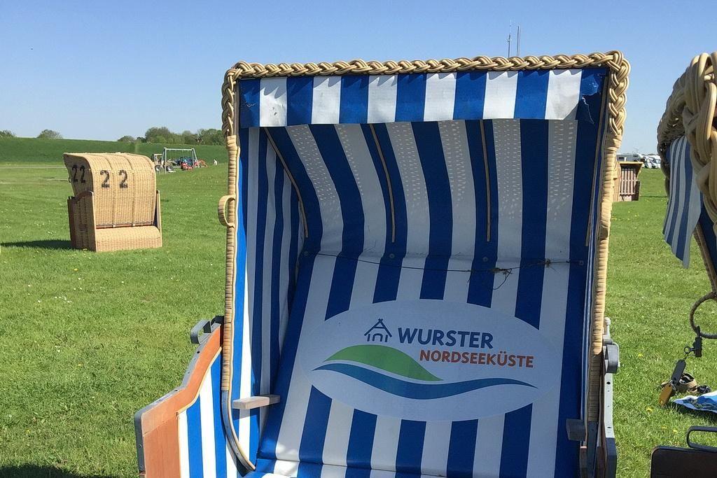 Strandnahe Ferienwohnung mit Sauna und großem Balkon mit XXL-Strandkorb in Wremen.
