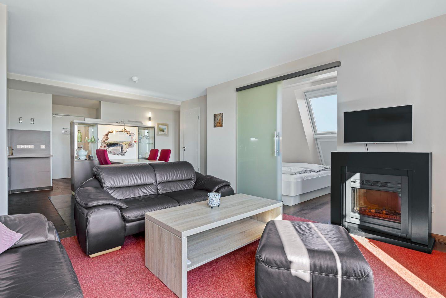 Das moderne Nichtraucher-Apartment verfügt über kostenloses WLAN und eine großzügig konzipierte und voll ausgestattete offene Küche mit Geschirrspüler, einer Kaffeemaschine, Toaster, Wasserkocher, Tiefkühlfach, Backofen und Mikrowelle. Das Schlafzimmer ist mit einem Doppelbett (1,80 x 2,00 m) ausgestattet. Der zweite Schlafbereich, ähnlich einem Alkoven - jedoch mit Fenster - verfügt über ein weiteres Doppelbett. Der Wohnbereich ist mit zwei Couchen, Flatscreen-TV, einer HiFi-Anlage und einem Elektrokamin ausgestattet. Ein Kinderbett kann gegen Entgelt aufgestellt werden und auf Wunsch könnt ihr einen Hochstuhl hinzubuchen. Im komfortablen Badezimmer mit begehbarer Dusche, Doppelwaschtisch, separatem WC und Bidet, Föhn und Kosmetikspiegel befindet sich eine eigene Sauna zur vollkommenen Entspannung in privater Atmosphäre. Zwei großzügige Balkone mit Blick zum Meer und in die weite, malerische Landschaft sind mit Gartenmöbeln für vier Personen ausgestattet und begehbar vom Wohn- bzw. Schlafzimmer. Sie machen das Urlaubsdomizil am Meer rundum perfekt.