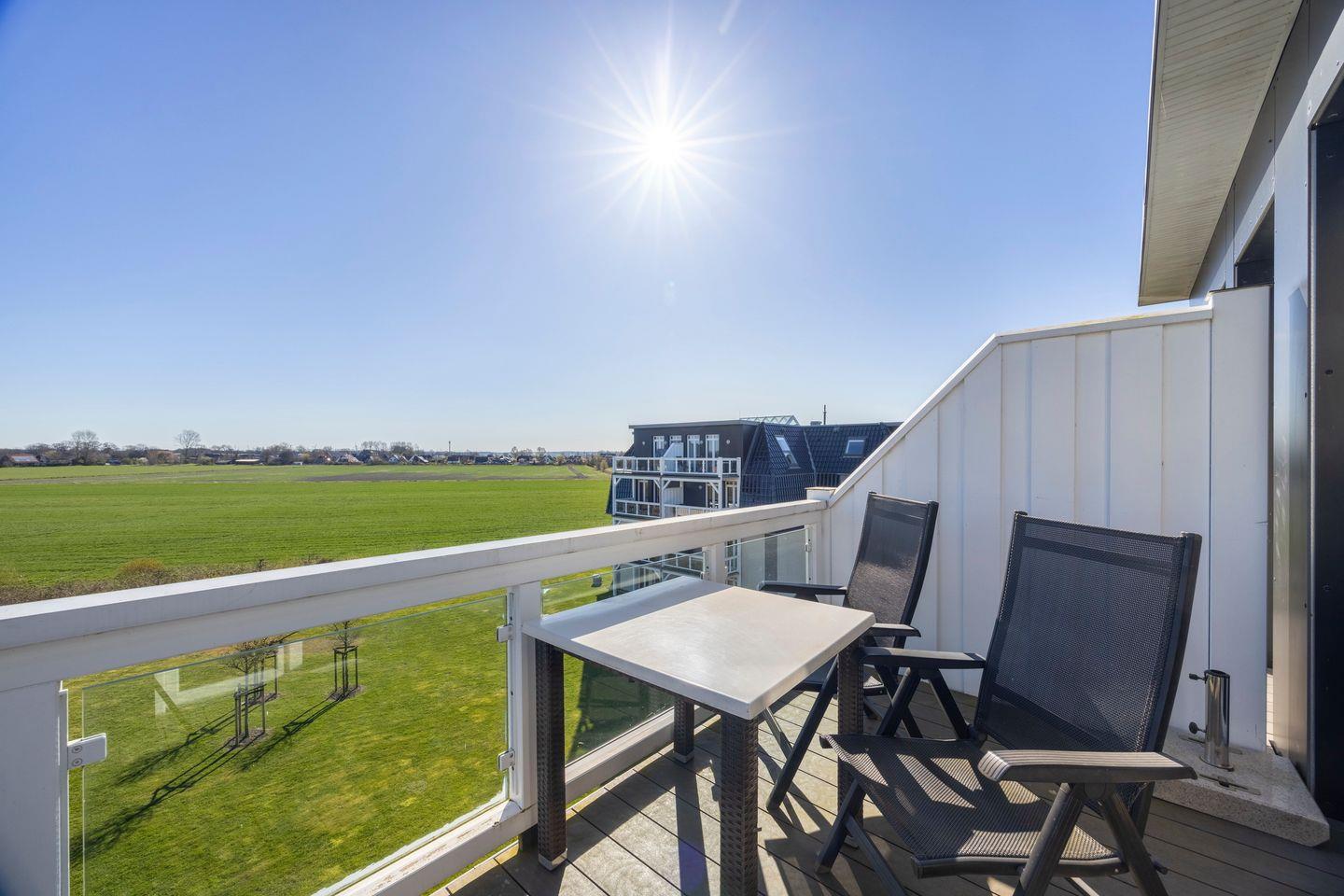 Moderne Dachgeschosswohnung nahe Strand mit Sauna, zwei Balkonen und Meerblick im Nordseebad Wremen.