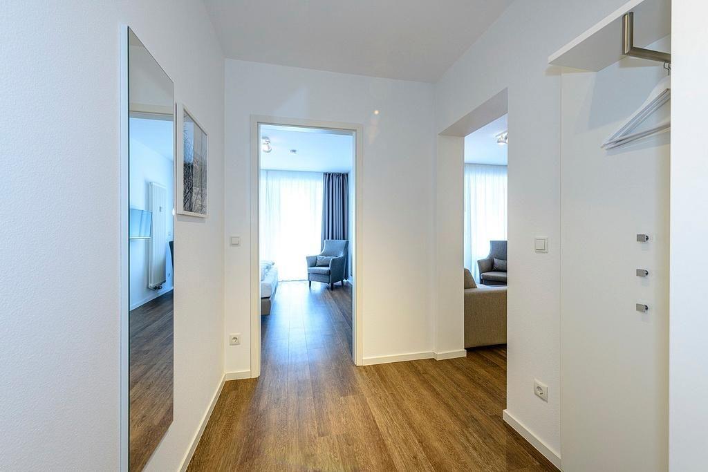 Das geschmackvoll eingerichtete Nichtraucher-Apartment verfügt über kostenfreies WLAN. Der Wohnbereich mit Schlafcouch, bietet eine voll ausgestattete offene Küchenzeile mit Geschirrspüler, Gefrierfach, Kaffeemaschine, Toaster, Wasserkocher und Mikrowelle mit Backfunktion sowie einen großen Flatscreen-TV und ein Radio. Das Apartment verfügt über einen Esstisch für 5 Personen und einen behaglichen Sitzbereich. Zwei separate Schlafzimmer stehen euch zur Verfügung. Eines davon verfügt über ein Doppelbett und einen eigenen Flatscreen-TV, ein weiteres Alkoven- Schlafzimmer über zwei Einzelbetten. Ein Kinderbett kann gegen Entgelt aufgestellt werden.