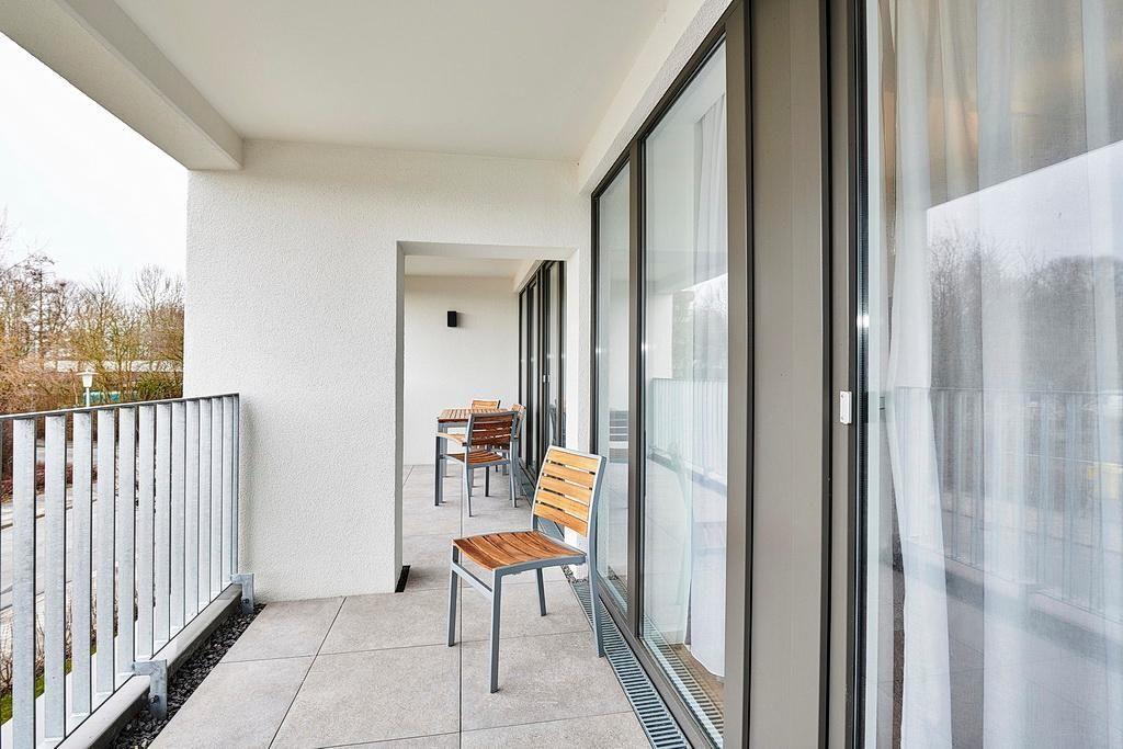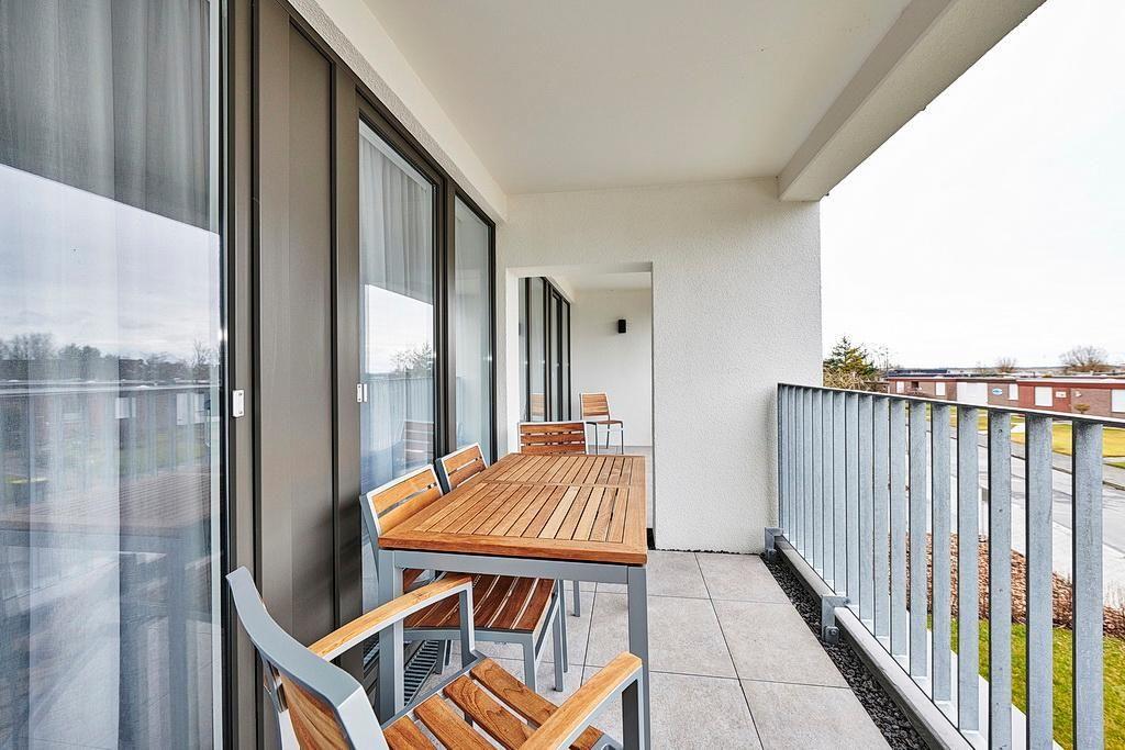 Modernes Ferienapartment mit großem Balkon, Schwimmbad- und Saunanutzung nahe Nordsee und Strand.