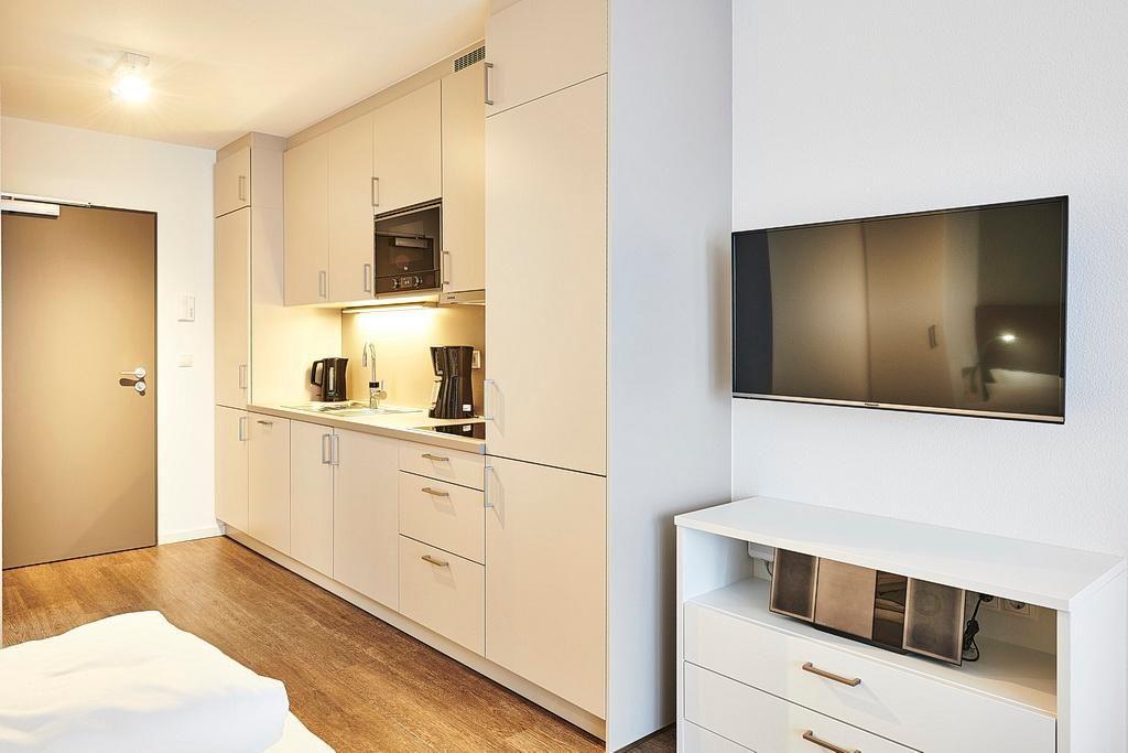 Das geschmackvoll eingerichtete Nichtraucher-Apartment verfügt über kostenfreies WLAN. Der Wohn- und Schlafbereich bietet eine voll ausgestattete offene Küchenzeile mit Geschirrspüler, Gefrierfach, Kaffeemaschine, Toaster, Wasserkocher und Mikrowelle mit Backfunktion sowie ein Doppelbett, einen großen Flatscreen-TV und ein Radio. Das Apartment verfügt über einen Esstisch für 3 Personen und einen behaglichen kleinen Sitzbereich. Ein Kinderbett kann gegen Entgelt aufgestellt werden. Im stilvollen Badezimmer befinden sich eine große begehbare Dusche sowie ein Waschtisch mit Föhn und Kosmetikspiegel. Nach einem erlebnisreichen Urlaubstag entspannt ihr auf dem überdachten und mit Gartenmöbeln für 3 Personen ausgestatteten Balkon.