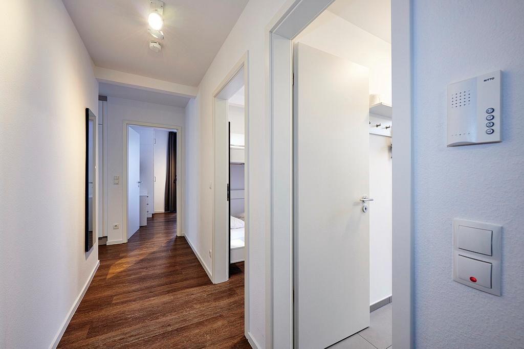 Das geschmackvoll eingerichtete Nichtraucher-Apartment verfügt über kostenfreies WLAN. Der Wohnbereich mit einer Schlafcouch bietet eine voll ausgestattete offene Küchenzeile mit Geschirrspüler, Gefrierfach, Kaffeemaschine, Toaster, Wasserkocher und Mikrowelle mit Backfunktion sowie einen großen Flatscreen-TV und ein Radio. Das Apartment verfügt über einen Esstisch für 5 Personen und einen behaglichen Sitzbereich. Zwei separate Schlafzimmer stehen euch zur Verfügung. Eines davon verfügt über ein Doppelbett und einen eigenen Flatscreen-TV, ein weiteres über ein Etagenbett. Ein Kinderbett kann gegen Entgelt aufgestellt werden. Im stilvollen Badezimmer befinden sich eine große begehbare Dusche sowie ein Waschtisch mit Föhn und Kosmetikspiegel. Nach einem erlebnisreichen Urlaubstag lässt es sich auf dem überdachten und mit Gartenmöbeln ausgestatteten Balkon wunderbar entspannen.