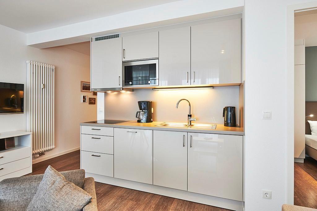 Das geschmackvoll eingerichtete Nichtraucher-Apartment verfügt über kostenfreies WLAN. Der Wohnbereich bietet eine voll ausgestattete offene Küchenzeile mit Geschirrspüler, Gefrierfach, Kaffeemaschine, Toaster, Wasserkocher und Mikrowelle mit Backfunktion sowie einen großen Flatscreen-TV und ein Radio. Das Apartment verfügt über einen Esstisch für 5 Personen und einen behaglichen Sitzbereich. Zwei separate Schlafzimmer mit jeweils einem Doppelbett stehen euch zur Verfügung. Eines davon verfügt zudem über einen eigenen Flatscreen-TV. Im stilvollen Badezimmer befinden sich eine große begehbare Dusche sowie ein Waschtisch mit Föhn und Kosmetikspiegel. Nach einem erlebnisreichen Urlaubstag entspannt ihr auf dem überdachten und mit Gartenmöbeln für 5 Personen ausgestatteten Balkon. Der Balkon ist vom Wohnbereich und vom Hauptschlafzimmer aus zugänglich.