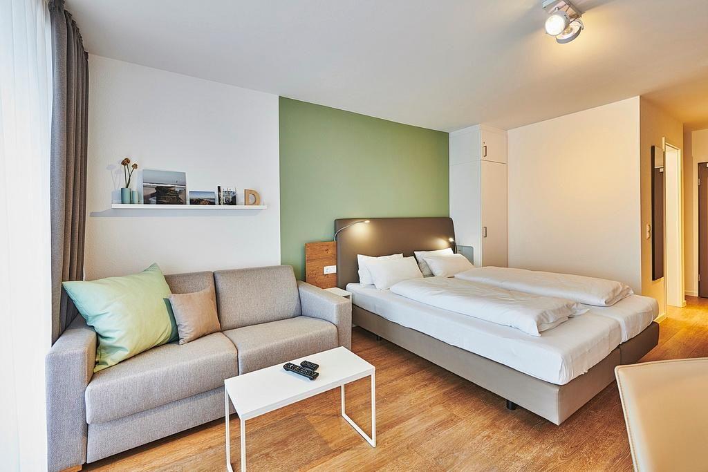 Strandnahes 1-Zimmer-Ferienapartment in Bensersiel mit Balkon, Schwimmbad- und Saunanutzung inklusive.