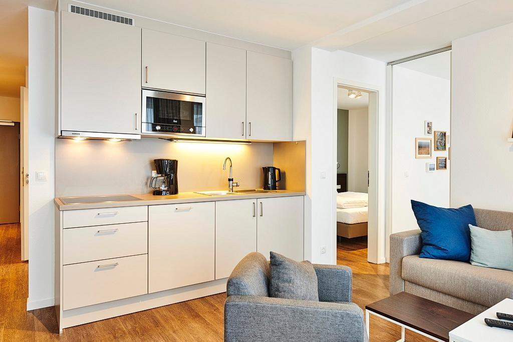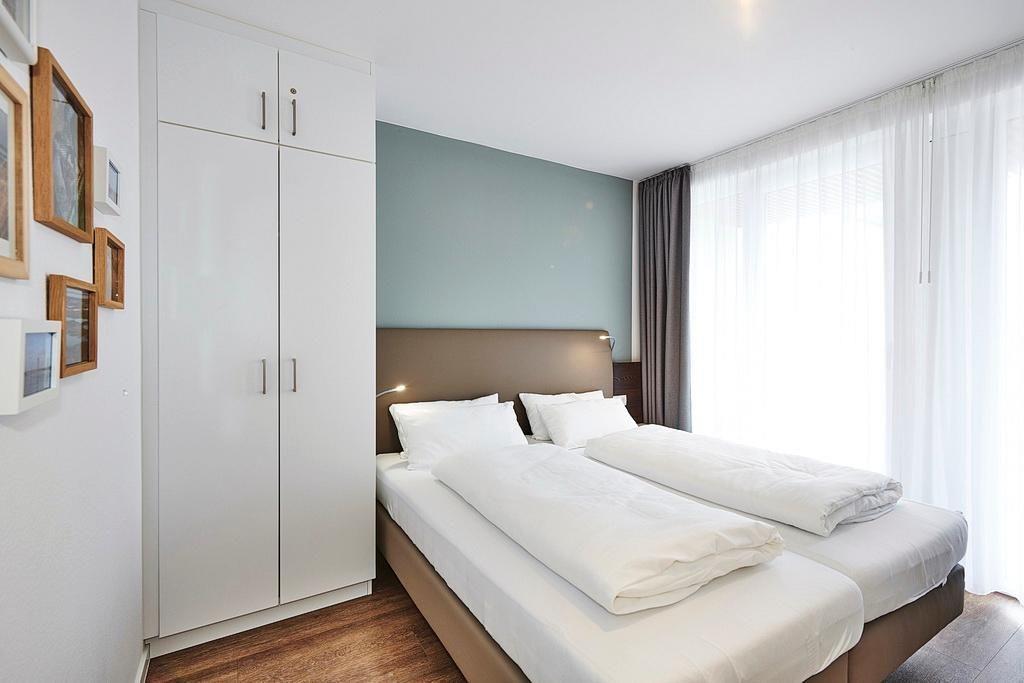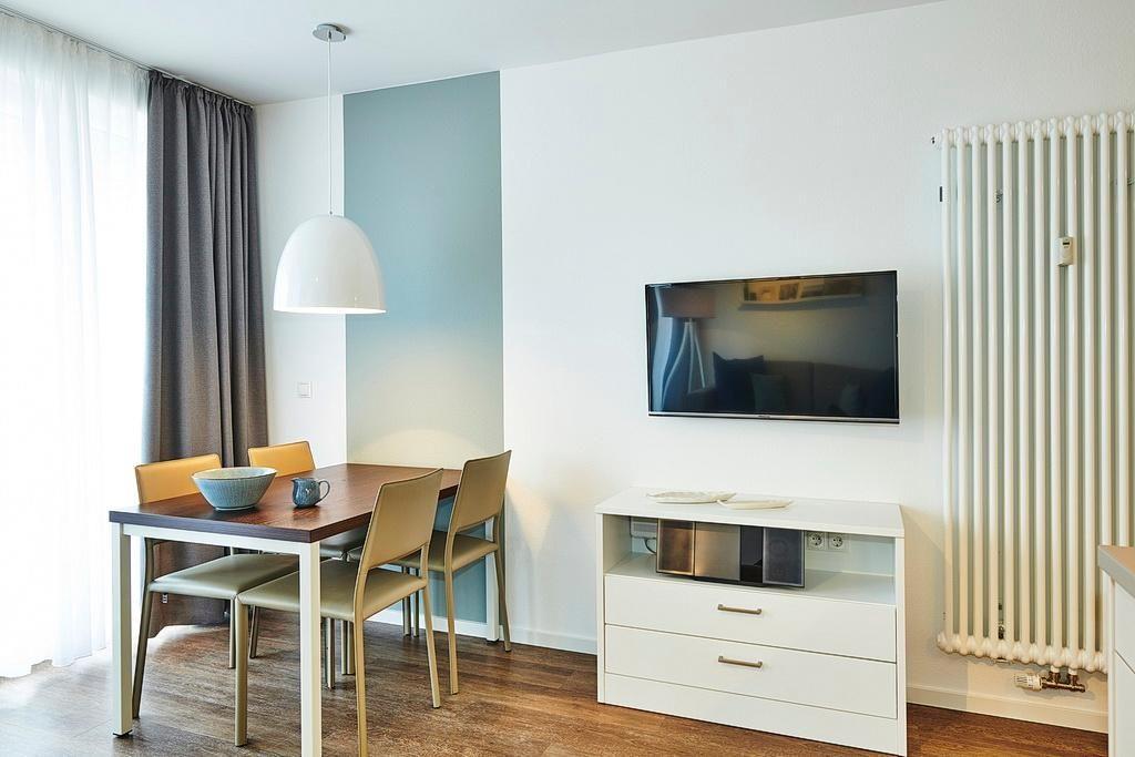 Das geschmackvoll eingerichtete Nichtraucher-Apartment verfügt über kostenfreies WLAN. Der Wohnbereich bietet eine voll ausgestattete offene Küchenzeile mit Geschirrspüler, Gefrierfach, Kaffeemaschine, Toaster, Wasserkocher und Mikrowelle mit Backfunktion sowie einen großen Flatscreen-TV und ein Radio. Das Apartment verfügt über einen Esstisch für 5 Personen und einen behaglichen Sitzbereich. Zwei separate Schlafzimmer mit jeweils einem Doppelbett stehen euch zur Verfügung. Eines davon verfügt zudem über einen eigenen Flatscreen-TV. Im stilvollen Badezimmer befinden sich eine große begehbare Dusche sowie ein Waschtisch mit Föhn und Kosmetikspiegel. Nach einem erlebnisreichen Urlaubstag entspannt ihr auf dem überdachten und mit Gartenmöbeln für 5 Personen ausgestatteten Balkon. Der Balkon ist vom Wohnbereich und vom Hauptschlafzimmer aus zugänglich.