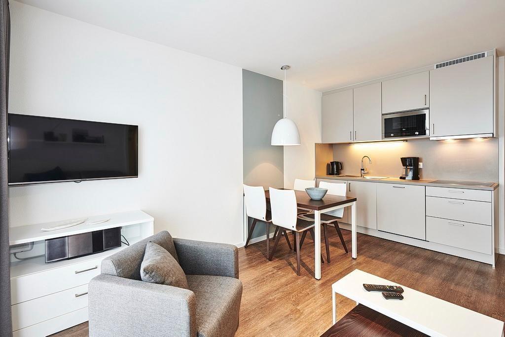 Modernes Apartment in Bensersiel nahe der Nordsee mit zwei Balkonen, Schwimmbad- und Saunanutzung inklusive.
