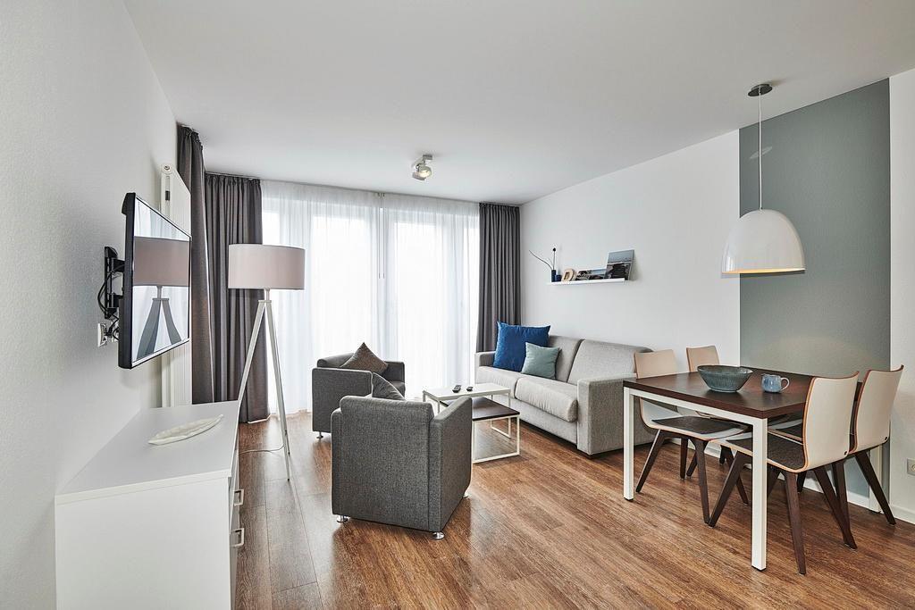Das geschmackvoll eingerichtete Nichtraucher-Apartment verfügt über kostenfreies WLAN. Der Wohnbereich bietet eine voll ausgestattete offene Küchenzeile mit Geschirrspüler, Gefrierfach, Kaffeemaschine, Toaster, Wasserkocher, Mikrowelle und Backofen sowie einen großen Flatscreen-TV und ein Radio. Das Apartment verfügt über einen Esstisch für 5 Personen und einen behaglichen Sitzbereich mit Schlafcouch. Zwei separate Schlafzimmer stehen euch zur Verfügung. Eines davon verfügt über ein Doppelbett mit Überlänge von 2,20 m und einen eigenen Flatscreen-TV, ein weiteres über zwei Einzelbetten. Ein Kinderbett kann gegen Entgelt aufgestellt werden. Im stilvollen Badezimmer befinden sich eine große begehbare Dusche sowie ein Waschtisch mit Föhn und Kosmetikspiegel. Nach einem erlebnisreichen Urlaubstag entspannt ihr auf dem überdachten und mit Gartenmöbeln ausgestatteten Balkon. Der Balkon ist vom Wohnbereich und vom Hauptschlafzimmer aus zugänglich.