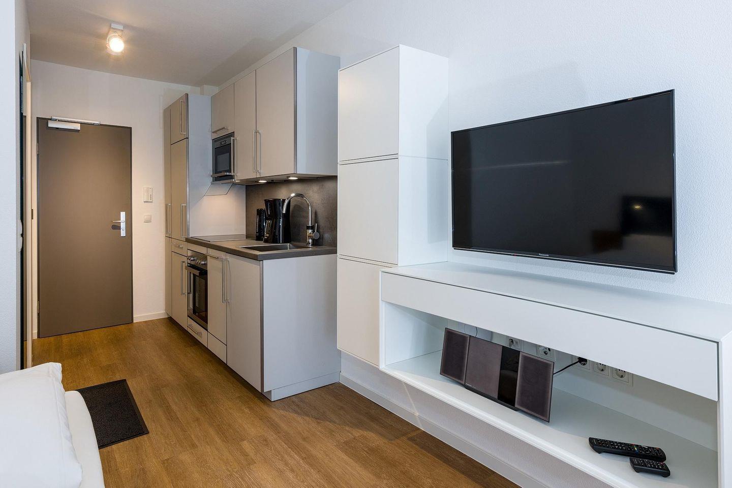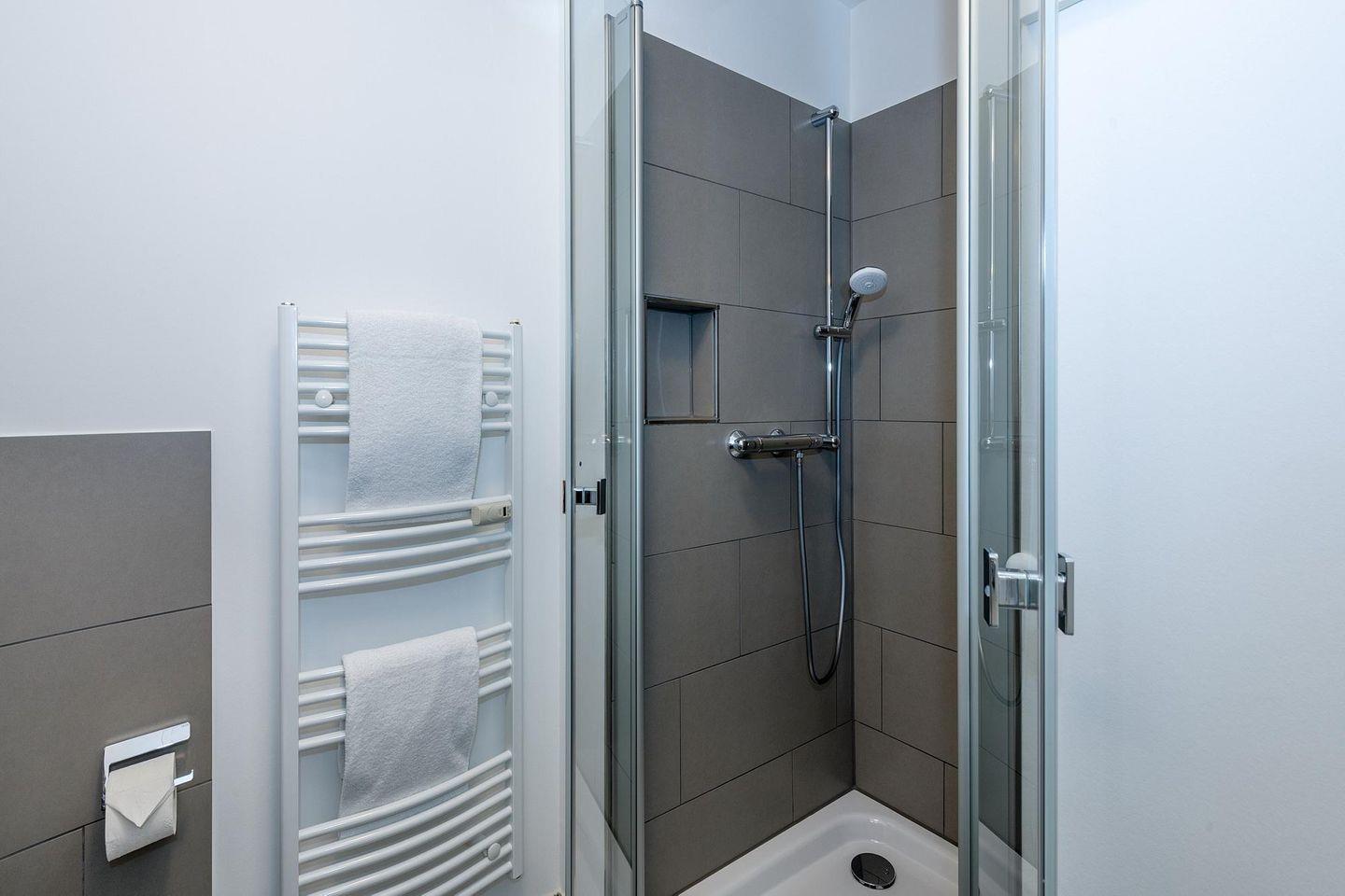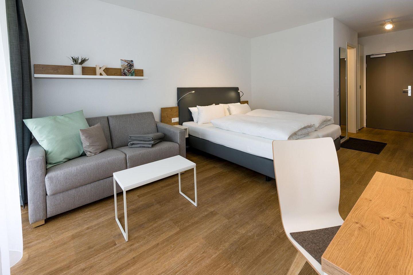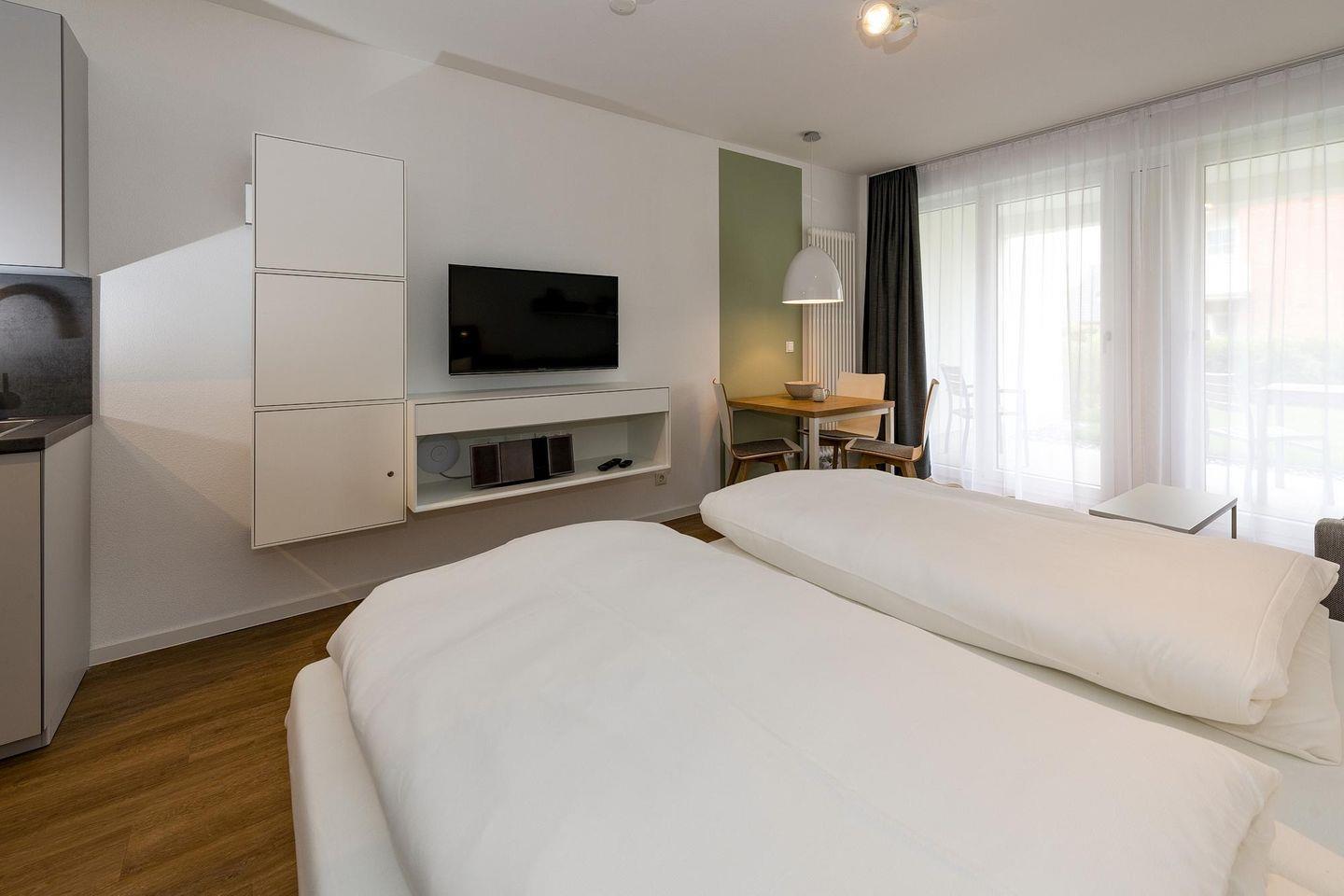 Das geschmackvoll eingerichtete Nichtraucher-Apartment verfügt über kostenfreies WLAN. Der Wohn-Schlafbereich bietet eine voll ausgestattete offene Küchenzeile mit Geschirrspüler, Gefrierfach, Kaffeemaschine, Toaster, Wasserkocher, Backofen und Mikrowelle sowie ein Doppelbett, einen großen Flatscreen-TV und ein Radio. Das Apartment verfügt über einen Esstisch für 3 Personen und einen behaglichen kleinen Sitzbereich. Ein Kinderbett kann gegen Entgelt aufgestellt werden. Im stilvollen Badezimmer befinden sich eine große begehbare Dusche sowie ein Waschtisch mit Föhn und Kosmetikspiegel. Nach einem erlebnisreichen Urlaubstag entspannt ihr auf der überdachten und mit Gartenmöbeln für 3 Personen ausgestatteten Terrasse.