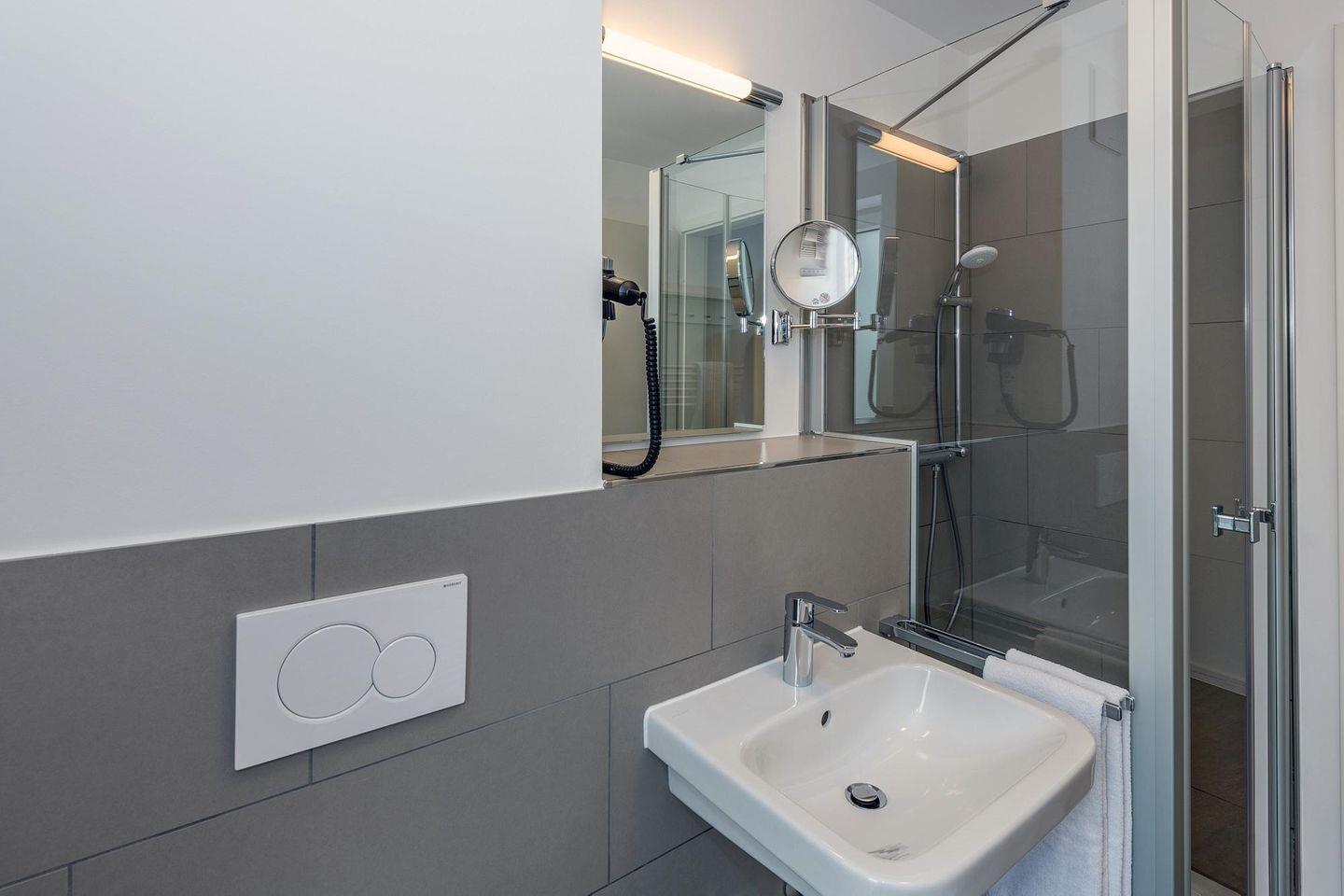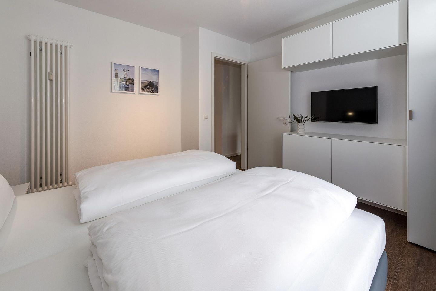 Das geschmackvoll eingerichtete Nichtraucher-Apartment verfügt über kostenfreies WLAN. Der Wohnbereich mit einer Schlafcouch bietet eine voll ausgestattete offene Küchenzeile mit Geschirrspüler, Gefrierfach, Backofen, Kaffeemaschine, Toaster, Wasserkocher und Mikrowelle sowie einen großen Flatscreen-TV und ein Radio. Das Apartment verfügt über einen Esstisch für 5 Personen und einen behaglichen Sitzbereich. Zwei separate Schlafzimmer stehen euch zur Verfügung. Eines davon verfügt über ein Doppelbett und einen eigenen Flatscreen-TV, ein weiteres über ein Etagenbett. Ein Kinderbett kann gegen Entgelt aufgestellt werden. Im stilvollen Badezimmer befinden sich eine große begehbare Dusche sowie ein Waschtisch mit Föhn und Kosmetikspiegel. Nach einem erlebnisreichen Urlaubstag lässt es sich auf dem überdachten und mit Gartenmöbeln ausgestatteten Balkon wunderbar entspannen.
