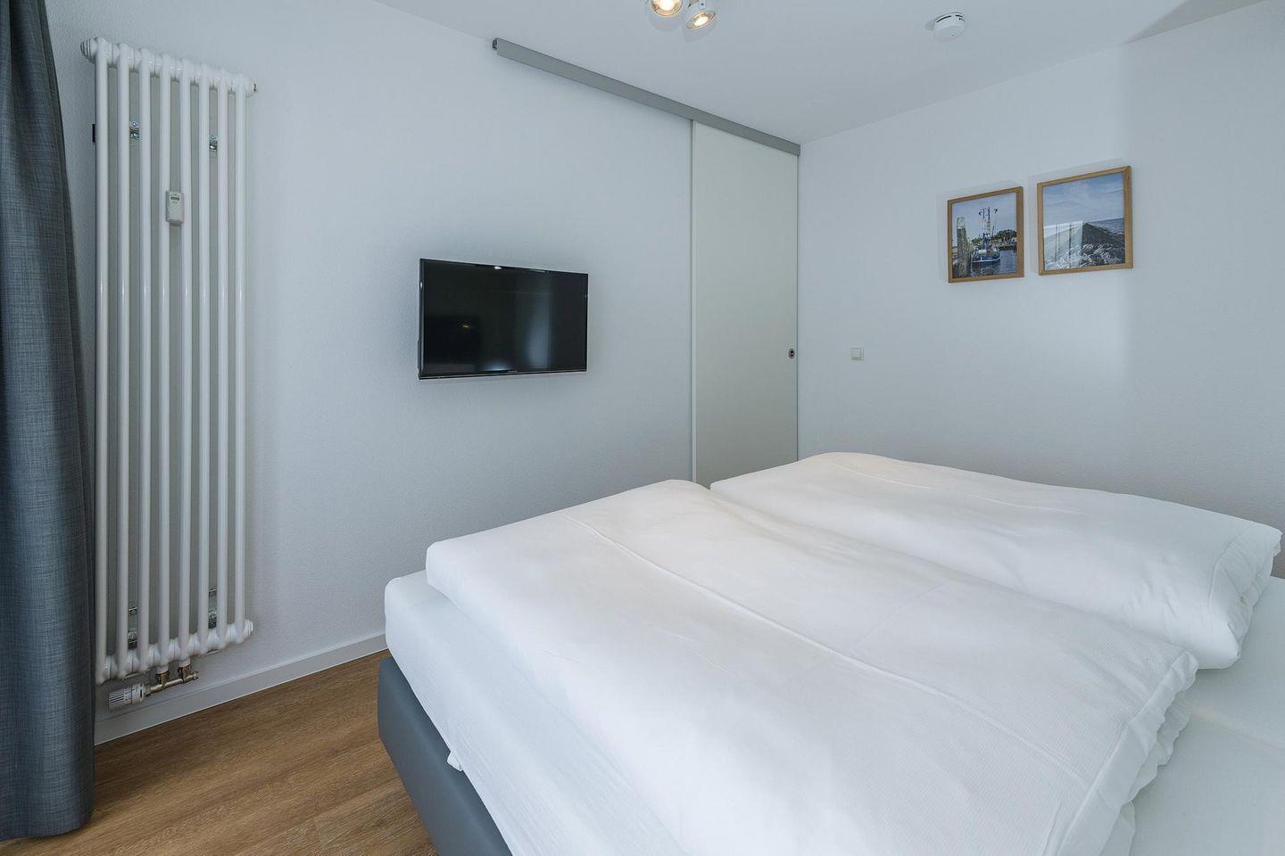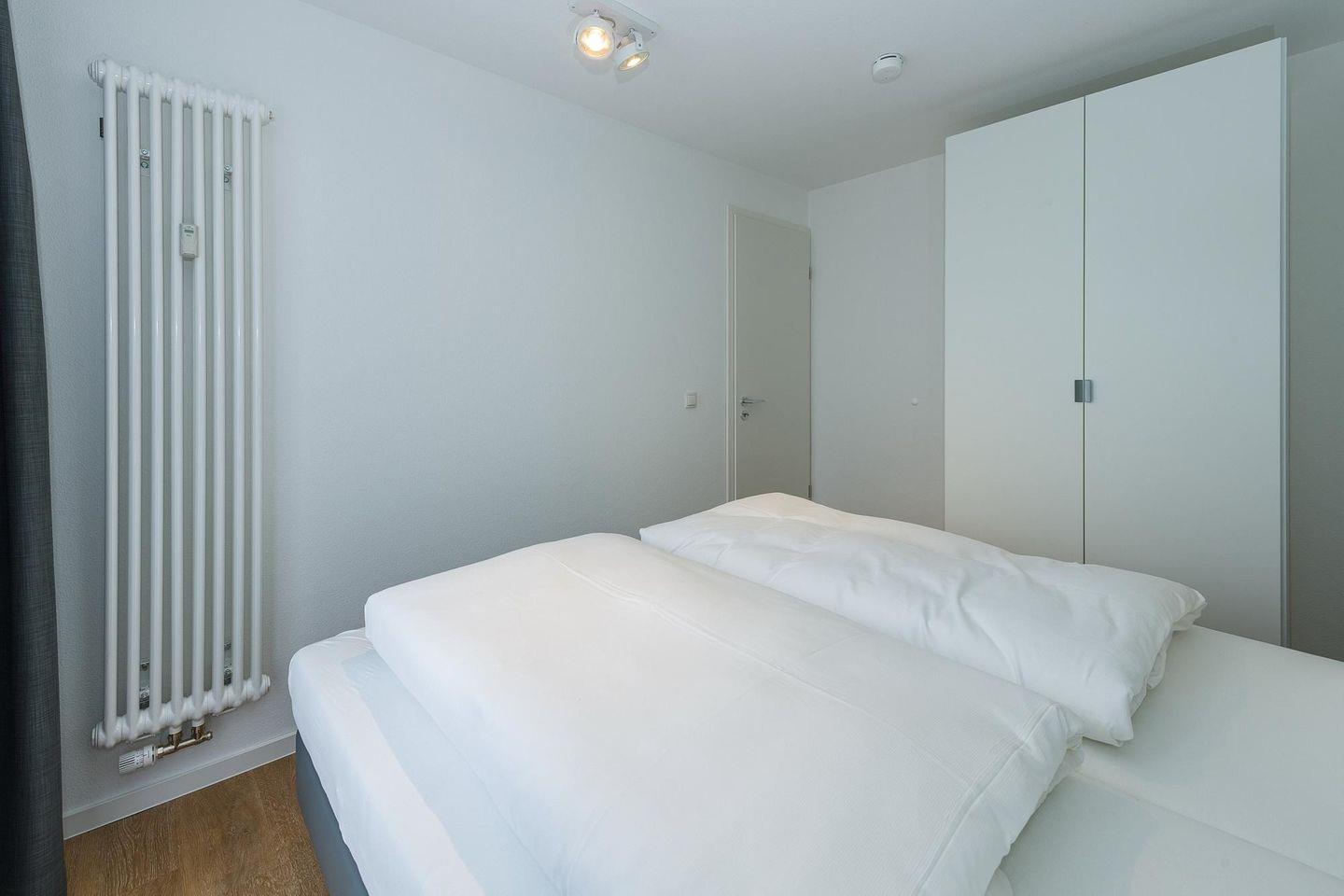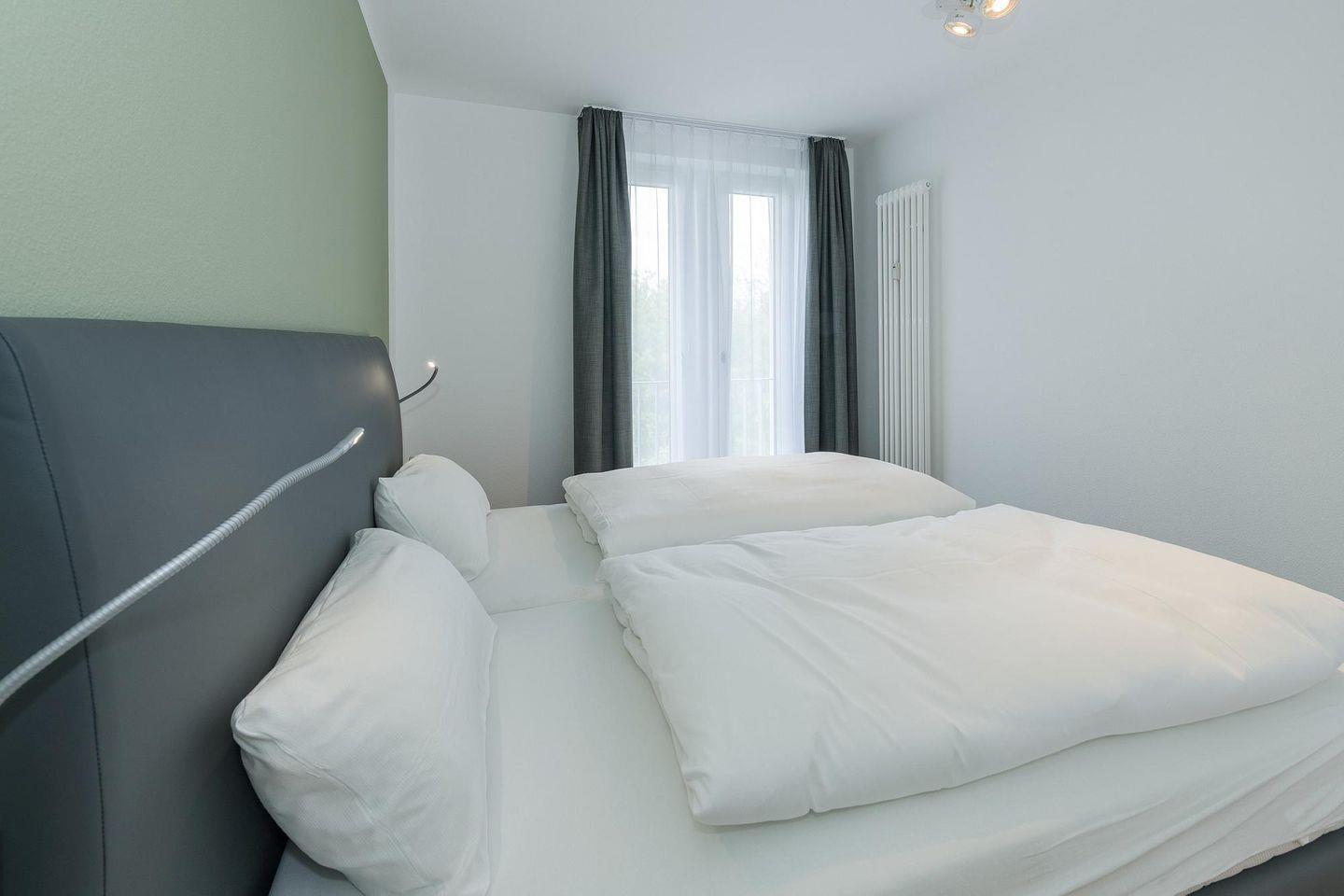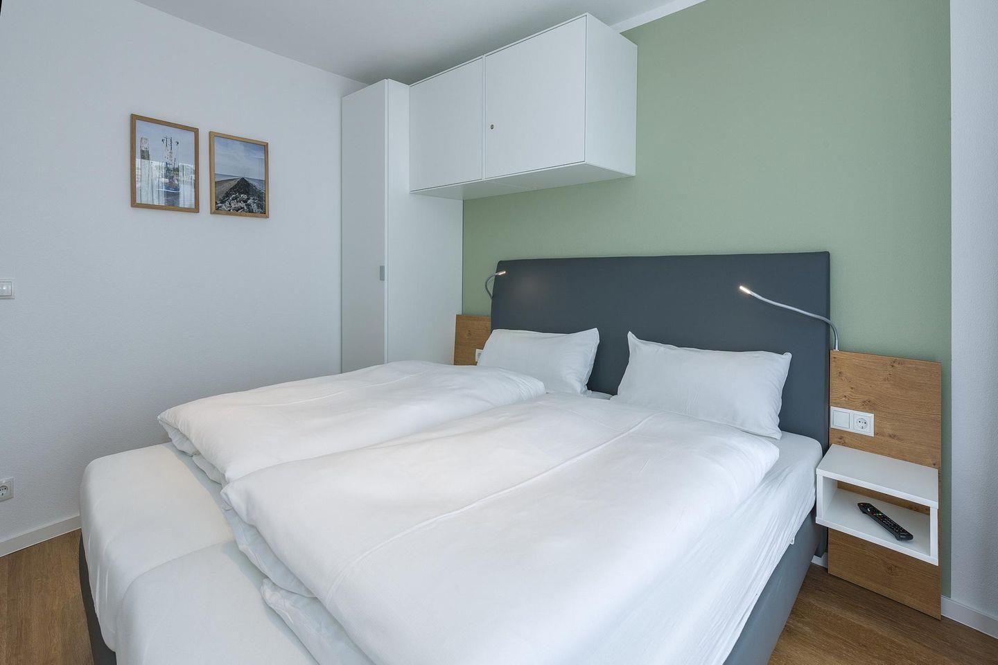 Das geschmackvoll eingerichtete Nichtraucher-Apartment verfügt über kostenfreies WLAN. Der Wohnbereich mit Schlafcouch bietet eine voll ausgestattete offene Küchenzeile mit Geschirrspüler, Gefrierfach, Backofen, Kaffeemaschine, Toaster, Wasserkocher und Mikrowelle sowie einen großen Flatscreen-TV und ein Radio. Das Apartment verfügt über einen Esstisch für 5 Personen und einen behaglichen Sitzbereich. Zwei separate Schlafzimmer mit jeweils einem Doppelbett stehen euch zur Verfügung. Eines davon verfügt zudem über einen eigenen Flatscreen-TV. Im stilvollen Badezimmer befinden sich eine große begehbare Dusche sowie ein Waschtisch mit Föhn und Kosmetikspiegel. Nach einem erlebnisreichen Urlaubstag entspannt ihr auf dem überdachten und mit Gartenmöbeln für 5 Personen ausgestatteten Balkon..