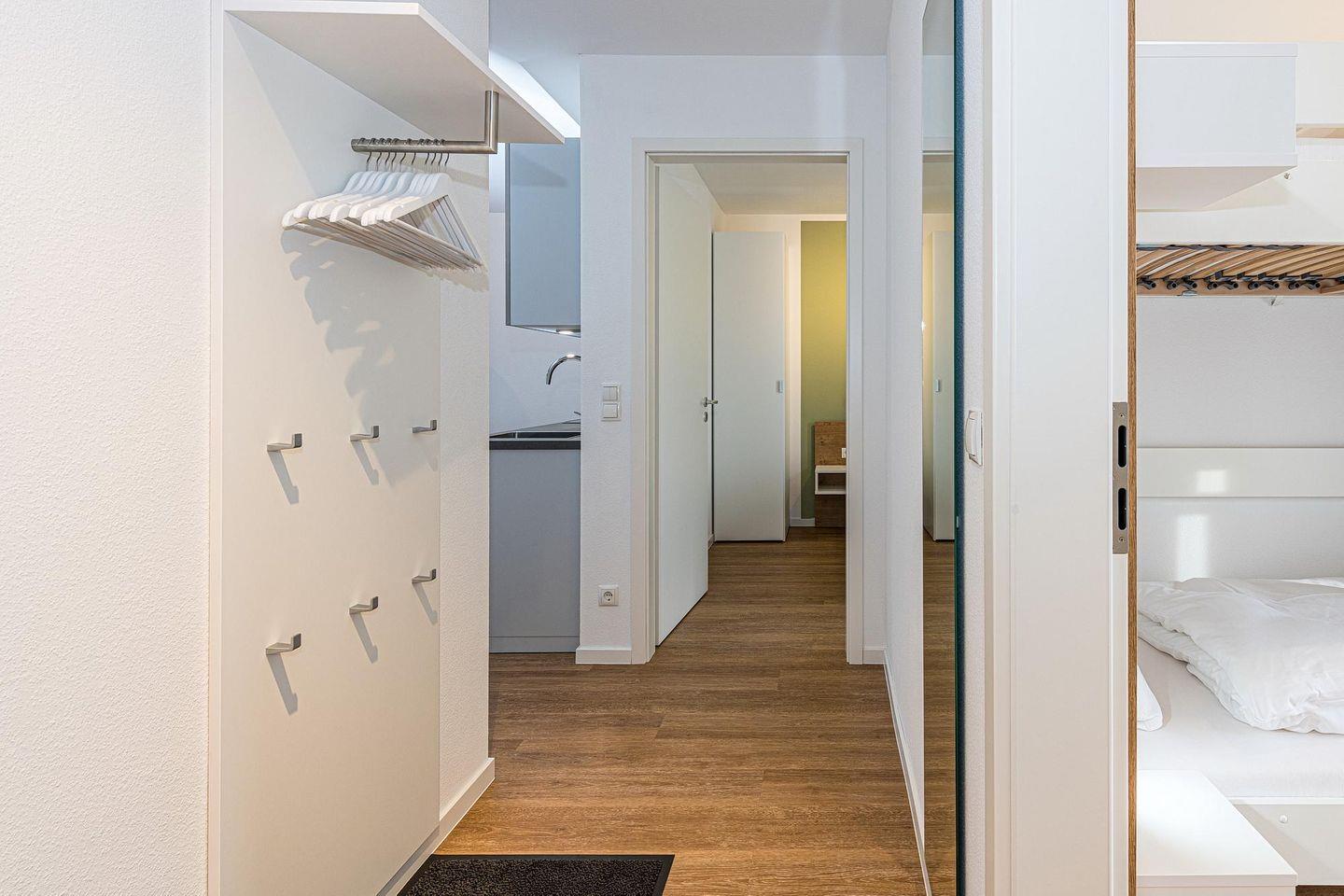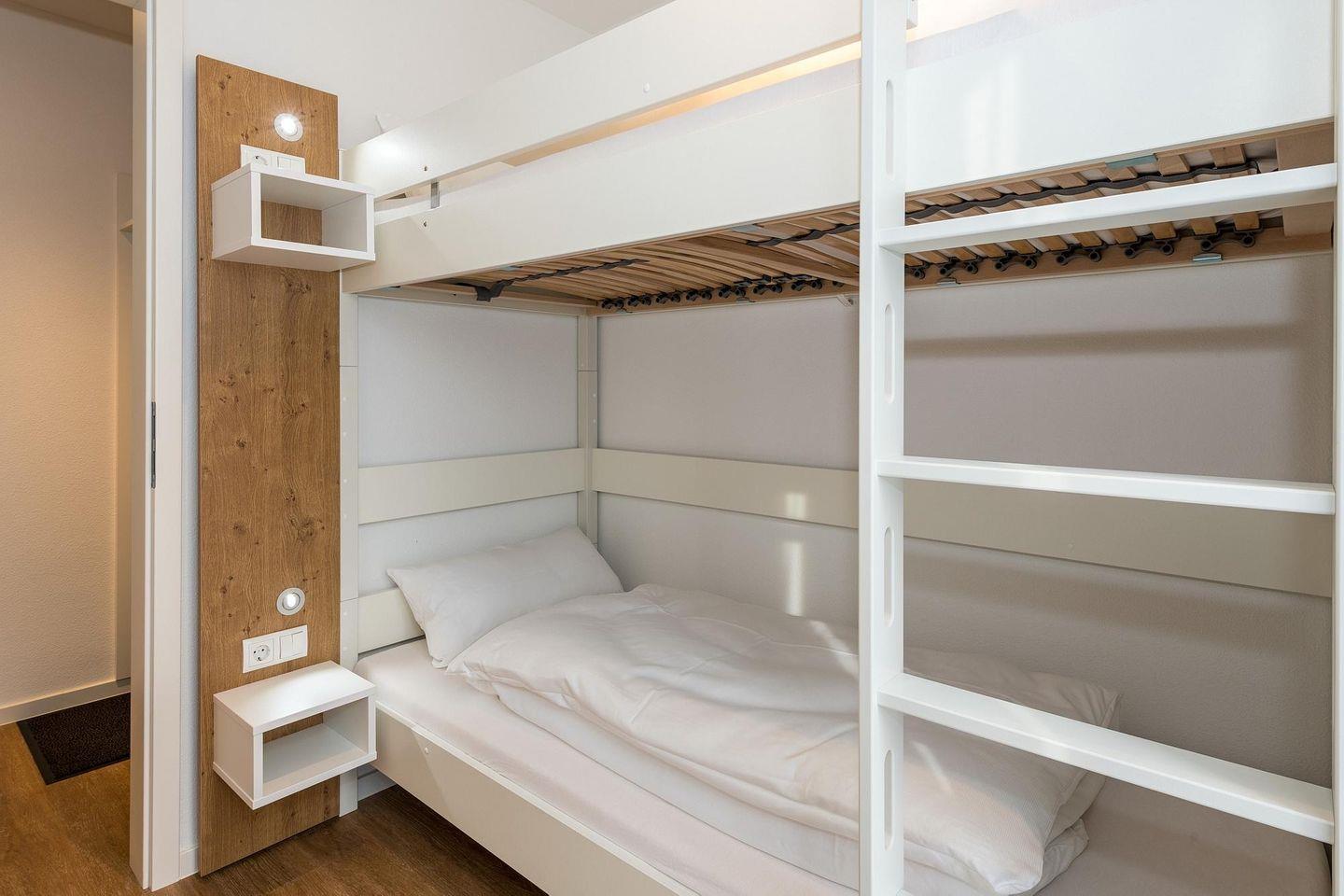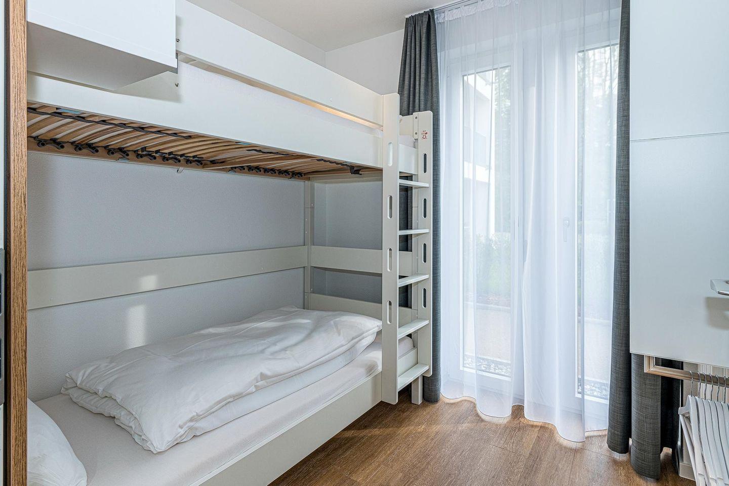 Das geschmackvoll eingerichtete Nichtraucher-Apartment verfügt über kostenfreies WLAN. Der Wohnbereich mit einer Schlafcouch bietet eine voll ausgestattete offene Küchenzeile mit Geschirrspüler, Backofen, Gefrierfach, Kaffeemaschine, Toaster, Wasserkocher und Mikrowelle sowie einen großen Flatscreen-TV und ein Radio. Das Apartment verfügt über einen Esstisch für 5 Personen und einen behaglichen Sitzbereich. Zwei separate Schlafzimmer stehen euch zur Verfügung. Eines davon verfügt über ein Doppelbett und einen eigenen Flatscreen-TV, ein weiteres über ein Etagenbett. Ein Kinderbett kann gegen Entgelt aufgestellt werden. Im stilvollen Badezimmer befinden sich eine große begehbare Dusche sowie ein Waschtisch mit Föhn und Kosmetikspiegel. Nach einem erlebnisreichen Urlaubstag lässt es sich auf der überdachten und mit Gartenmöbeln ausgestatteten Terrasse wunderbar entspannen.