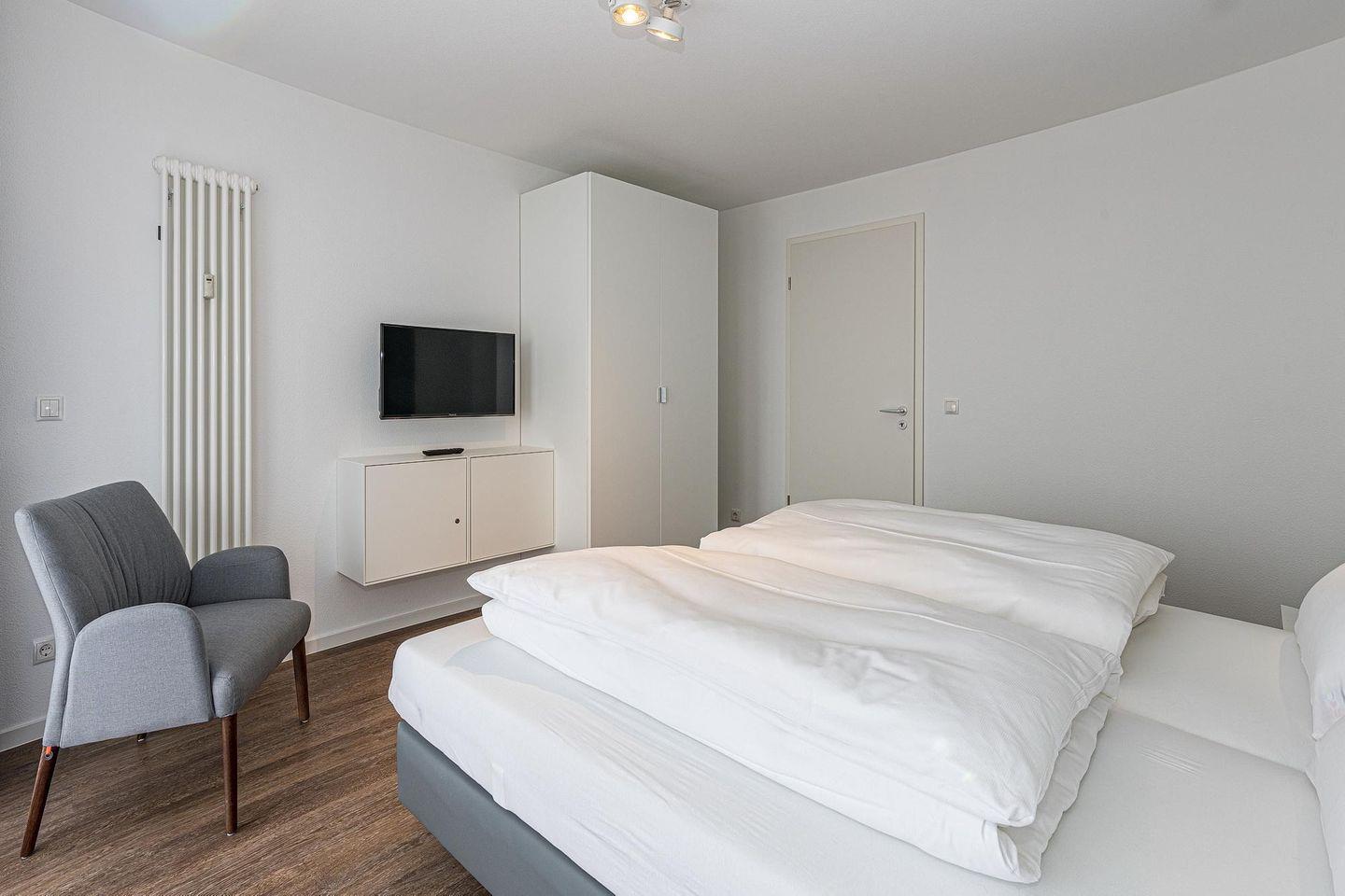 Das geschmackvoll eingerichtete Nichtraucher-Apartment verfügt über kostenfreies WLAN. Der Wohnbereich mit einer Schlafcouch bietet eine voll ausgestattete offene Küchenzeile mit Geschirrspüler, Gefrierfach, Backofen, Kaffeemaschine, Toaster, Wasserkocher und Mikrowelle sowie einen großen Flatscreen-TV und ein Radio. Das Apartment verfügt über einen Esstisch für 5 Personen und einen behaglichen Sitzbereich. Zwei separate Schlafzimmer stehen euch zur Verfügung. Das Hauptschlafzimmer verfügt über ein Doppelbett mit eigenem Flatscreen-TV. Ein weiteres Schlafzimmer verfügt über zwei Einzelbetten mit Oberlichtfenster und Verdunklungsmöglichkeit. Ein Kinderbett kann gegen Entgelt aufgestellt werden. Im stilvollen Badezimmer befinden sich eine große begehbare Dusche sowie ein Waschtisch mit Föhn und Kosmetikspiegel. Nach einem erlebnisreichen Urlaubstag entspannt ihr auf den überdachten und mit Gartenmöbeln für 5 Personen ausgestatteten Balkonen. Die Balkone sind vom Wohnbereich bzw. vom Hauptschlafzimmer aus zugänglich. Besonders komfortabel sind die elektrischen Außenrollladen zur Verdunklung, die außerdem für ein angenehmes Raumklima sorgen - besonders in den warmen Sommermonaten.