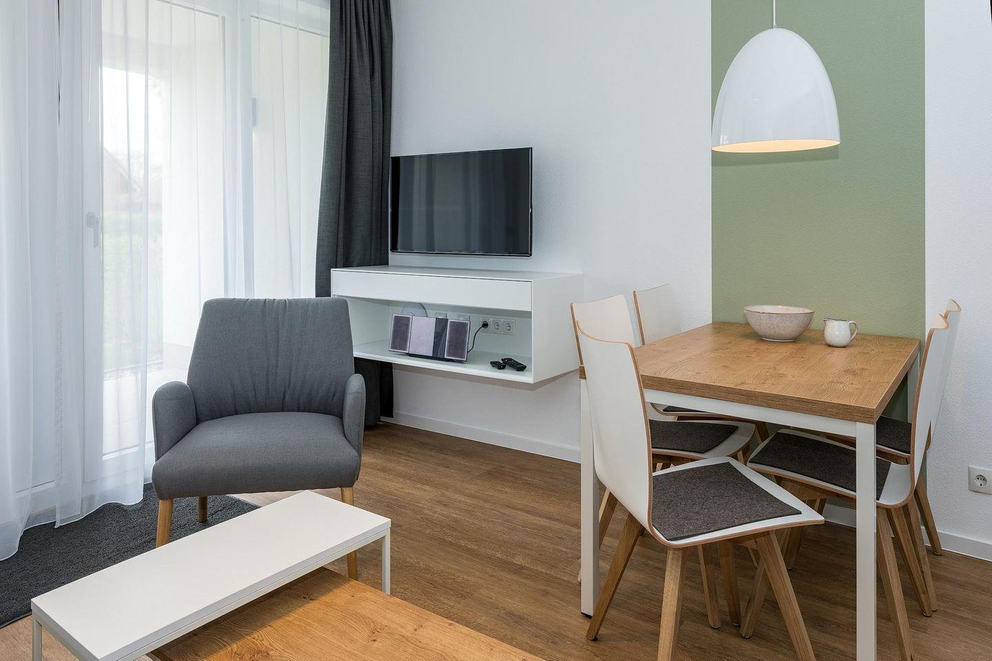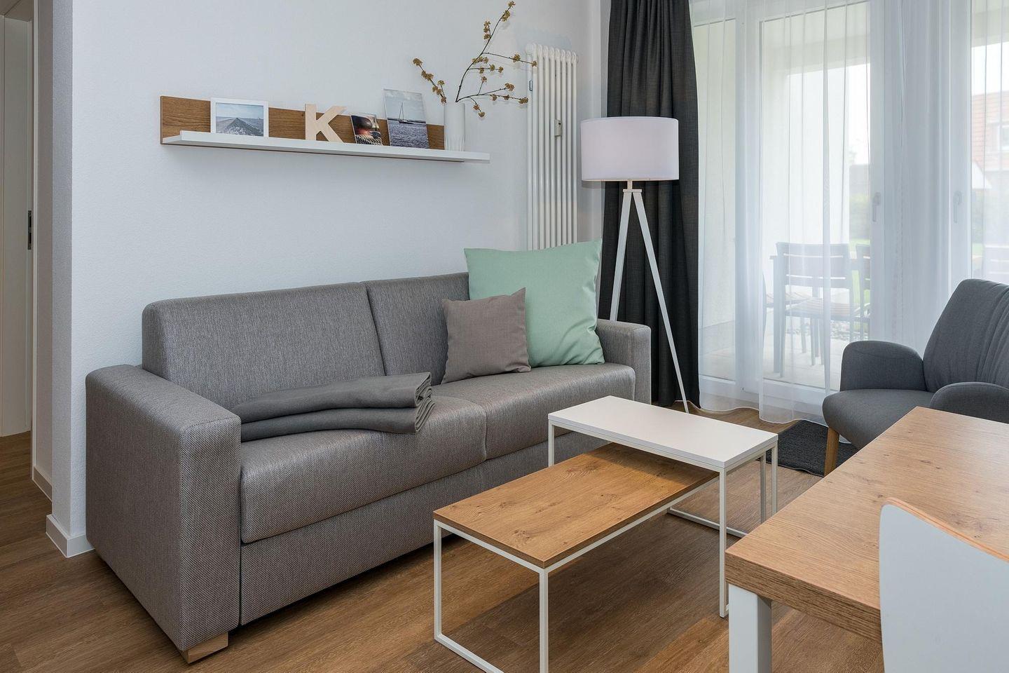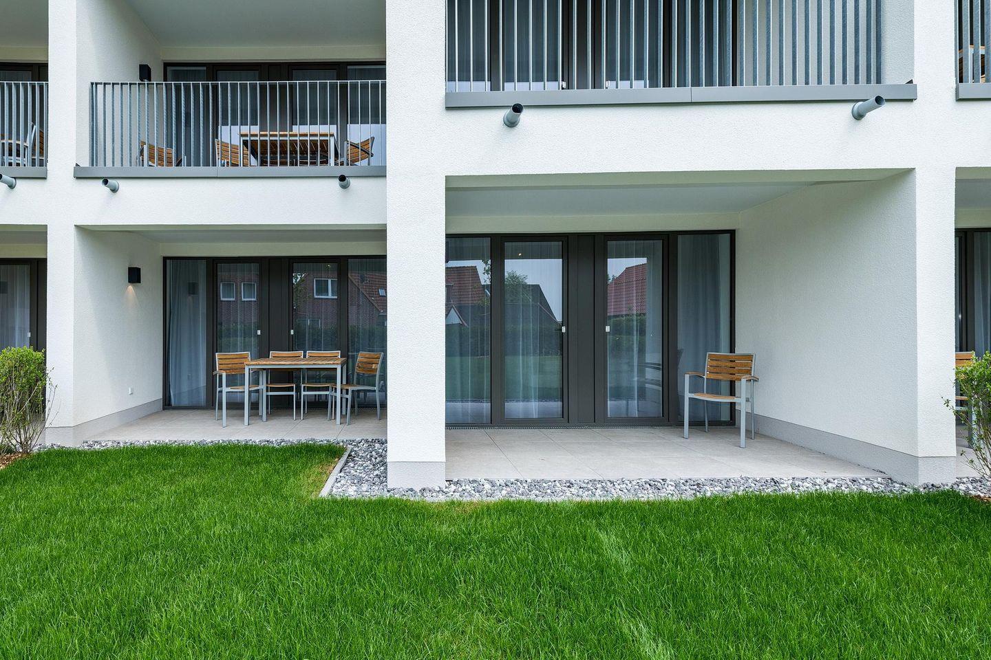 Modernes Apartment in Bensersiel mit zwei Terrassen, Schwimmbad- und Saunanutzung, nur 500 m vom Sandstrand entfernt.