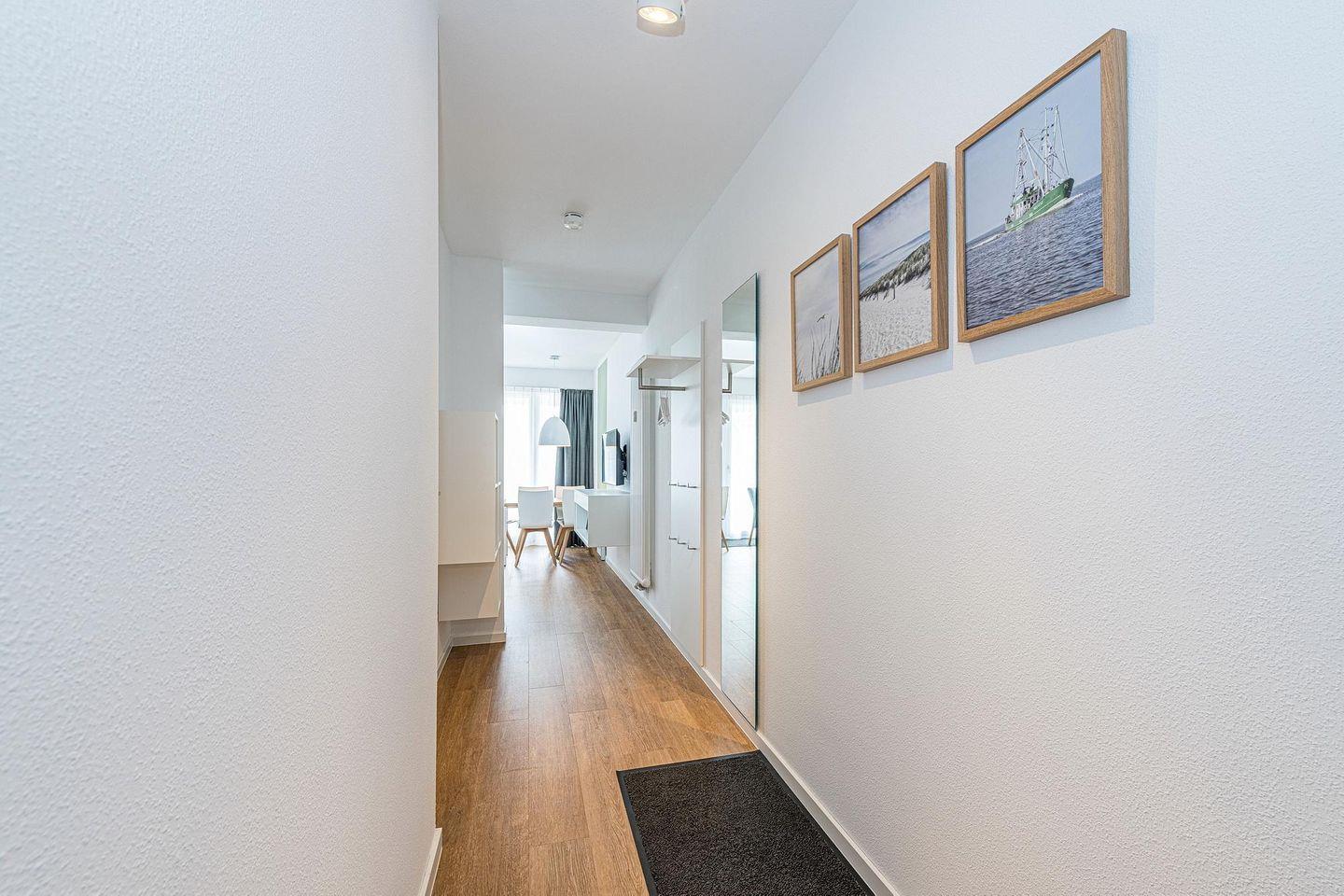 Modernes Apartment nahe Nordsee mit großer Terrasse, Schwimmbad- und Saunanutzung sowie kostenfreiem Parkplatz.