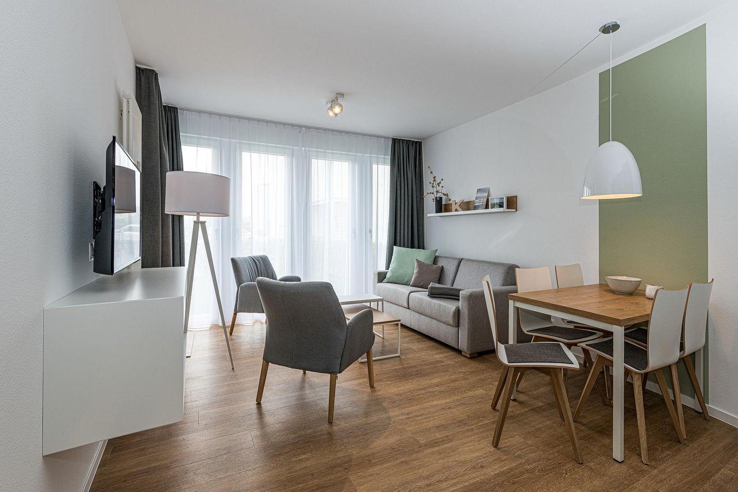 Modernes Apartment in Bensersiel mit Terrasse, Pool- und Saunanutzung, nur 500 m von der Nordsee entfernt.