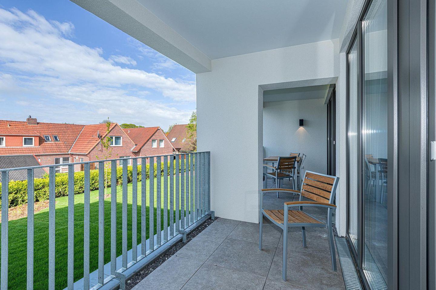 Modernes Ferienapartment nahe Nordsee mit Balkon, Schwimmbad und Sauna.