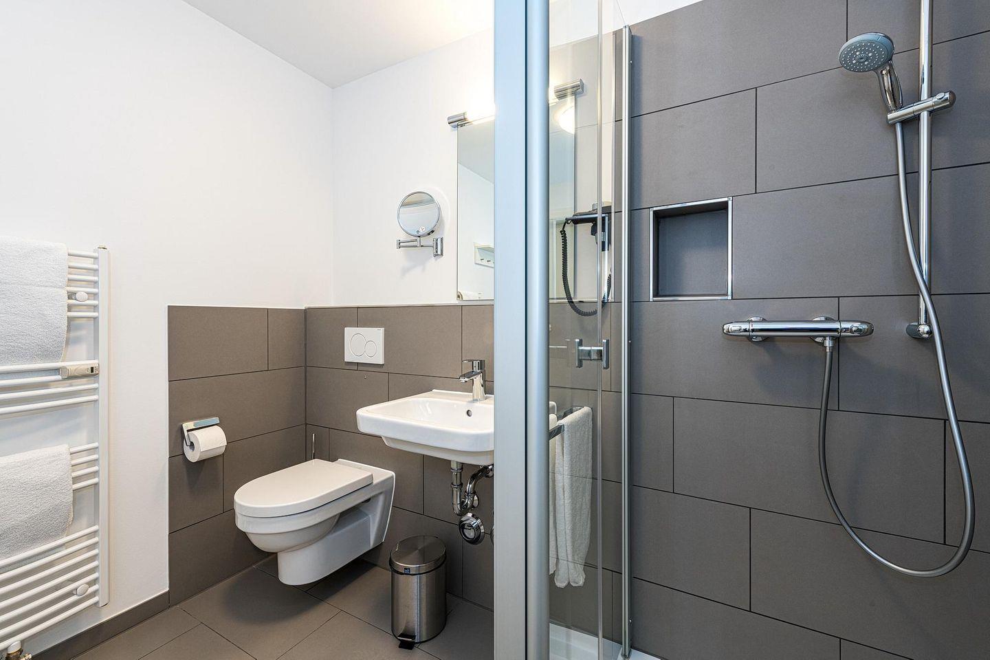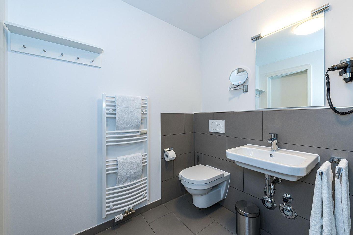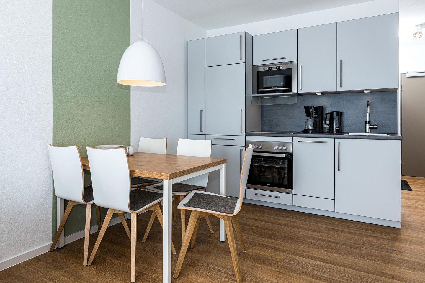 Das geschmackvoll eingerichtete Nichtraucher-Apartment verfügt über kostenfreies WLAN. Der Wohnbereich bietet eine voll ausgestattete offene Küchenzeile mit Geschirrspüler, Gefrierfach, Kaffeemaschine, Toaster, Wasserkocher, Backofen und Mikrowelle sowie einen großen Flatscreen-TV und ein Radio. Das Apartment verfügt über einen Esstisch für 5 Personen und einen behaglichen Sitzbereich mit Schlafcouch. Zwei separate Schlafzimmer stehen euch zur Verfügung. Eines davon verfügt über ein Doppelbett und einen eigenen Flatscreen-TV, ein weiteres über zwei Einzelbetten. Ein Kinderbett kann gegen Entgelt aufgestellt werden. Im stilvollen Badezimmer befinden sich eine große begehbare Dusche sowie ein Waschtisch mit Föhn und Kosmetikspiegel. Nach einem erlebnisreichen Urlaubstag entspannt ihr auf dem überdachten und mit Gartenmöbeln für 4 Personen ausgestatteten Balkon.