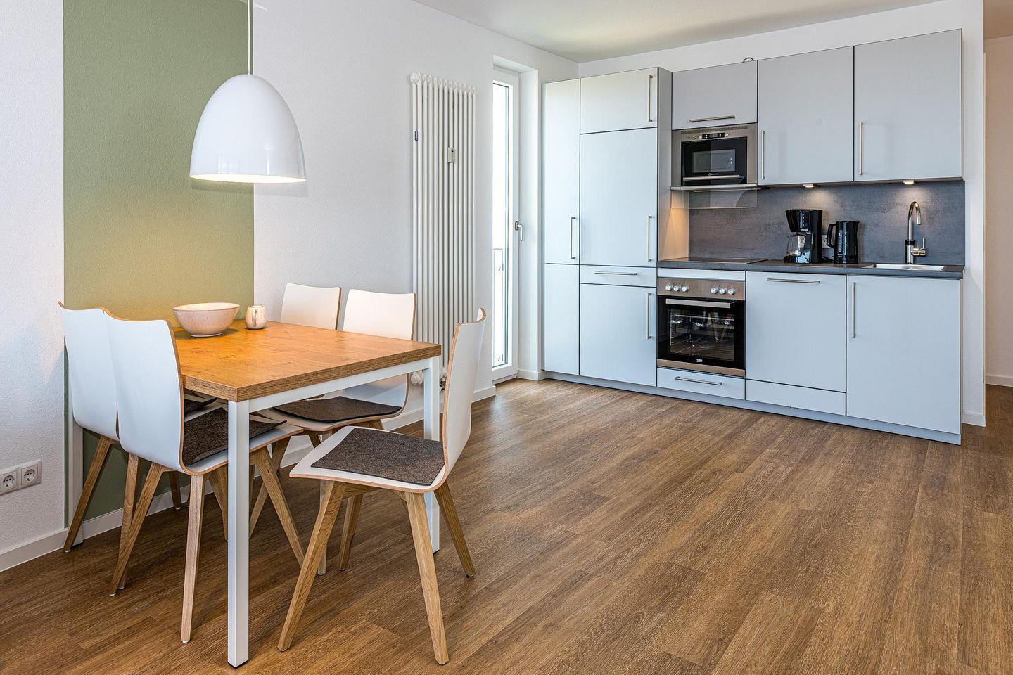 Die 58 m² große 3-Zimmer Ferienwohnung ist für bis zu 5 Personen geeignet. Besonders hervorzuheben ist der überdachte Balkon in Süd-West-Lage. Hier lässt sich bereits beim Frühstück die Morgensonne genießen.