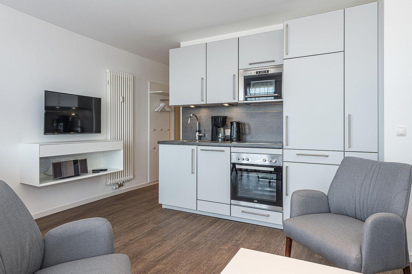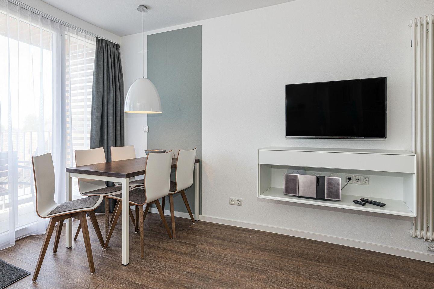 Die 58 m² große 3-Zimmer Ferienwohnung ist für bis zu 5 Personen geeignet. Besonders hervorzuheben ist der großzügige und überdachte Balkon in sonniger Süd-West-Lage. Hier lässt sich bis zum Abend das wohltuende Meeresklima und die Sonne genießen.