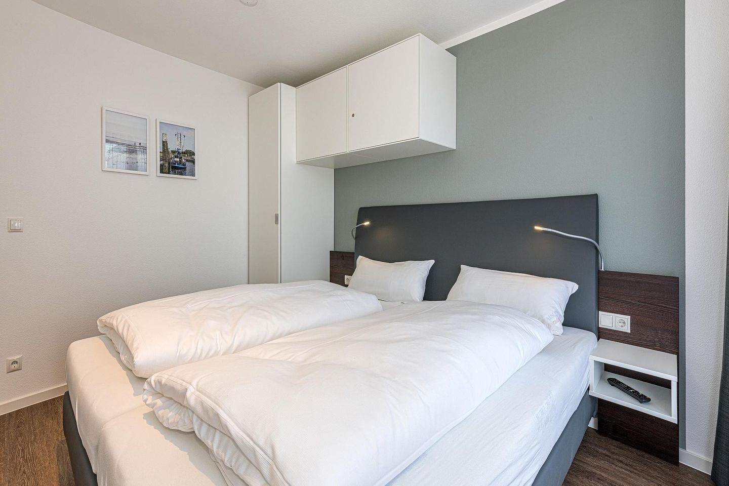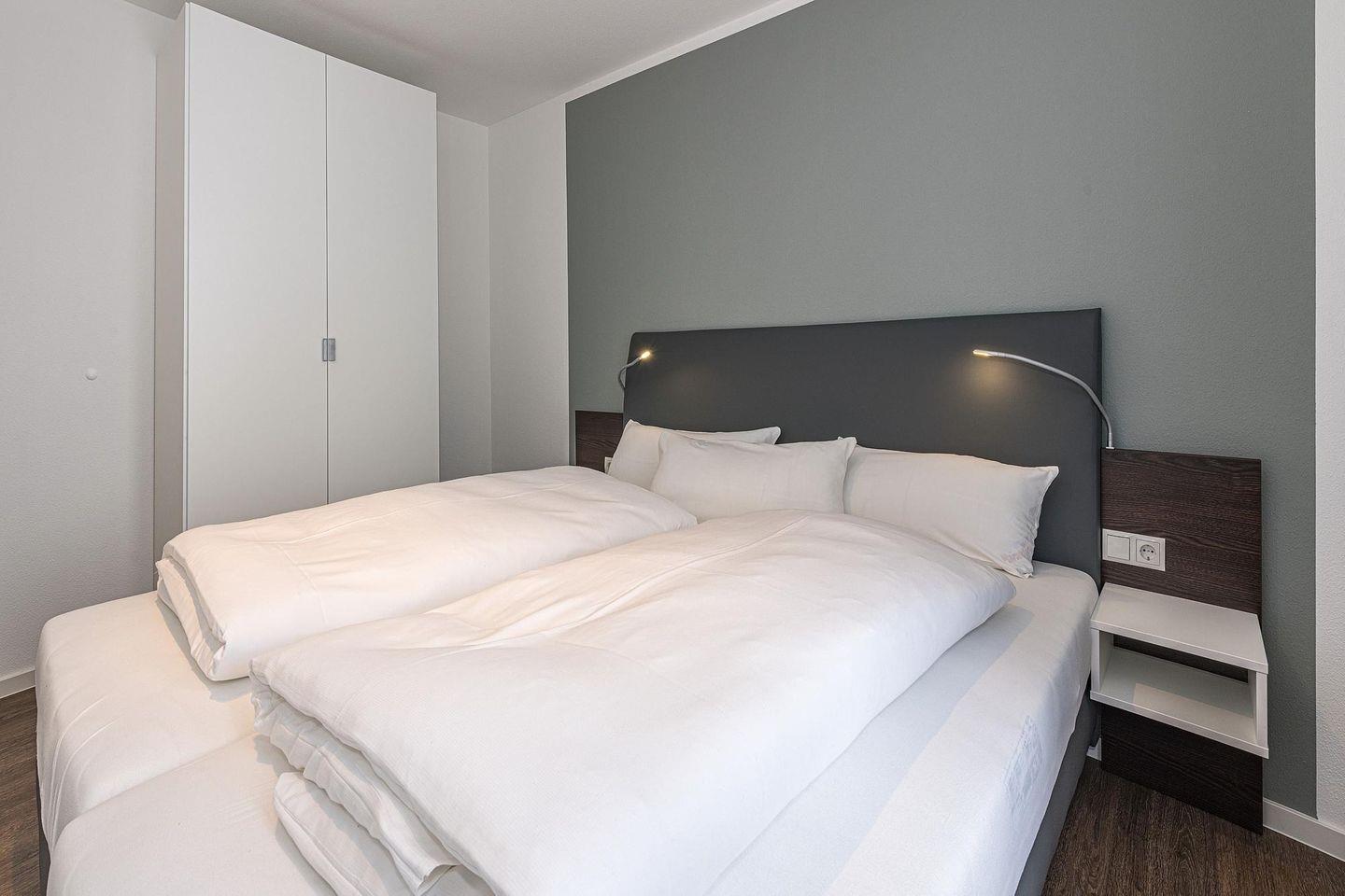 Das geschmackvoll eingerichtete Nichtraucher-Apartment verfügt über kostenfreies WLAN. Der Wohnbereich mit einer Schlafcouch bietet eine voll ausgestattete offene Küchenzeile mit Geschirrspüler, Backofen, Gefrierfach, Kaffeemaschine, Toaster, Wasserkocher und Mikrowelle sowie einen großen Flatscreen-TV und ein Radio. Das Apartment verfügt über einen Esstisch für 5 Personen und einen behaglichen Sitzbereich. Zwei separate Schlafzimmer stehen euch zur Verfügung. Beide verfügen über ein Doppelbett und eines davon über einen eigenen Flatscreen-TV. Im stilvollen Badezimmer mit Tageslicht befinden sich eine große begehbare Dusche sowie ein Waschtisch mit Föhn und Kosmetikspiegel. Nach einem erlebnisreichen Urlaubstag entspannt ihr auf dem überdachten und mit Gartenmöbeln für 5 Personen ausgestatteten Balkon. Die Fenster des Apartments verfügen über Insektenschutz.