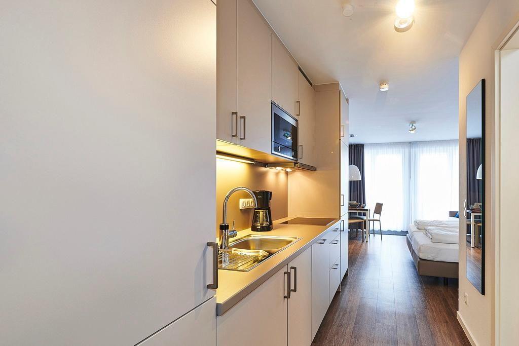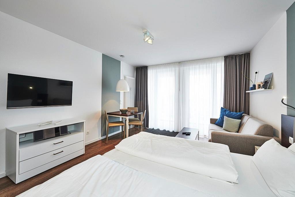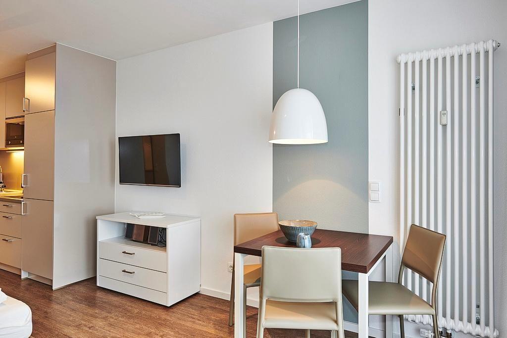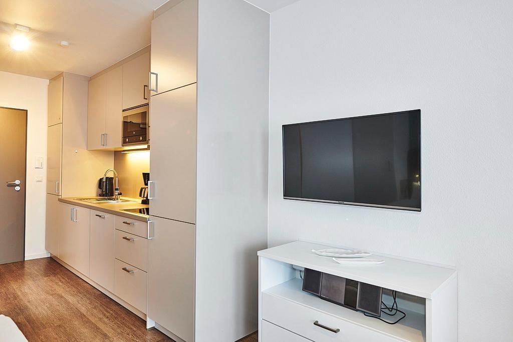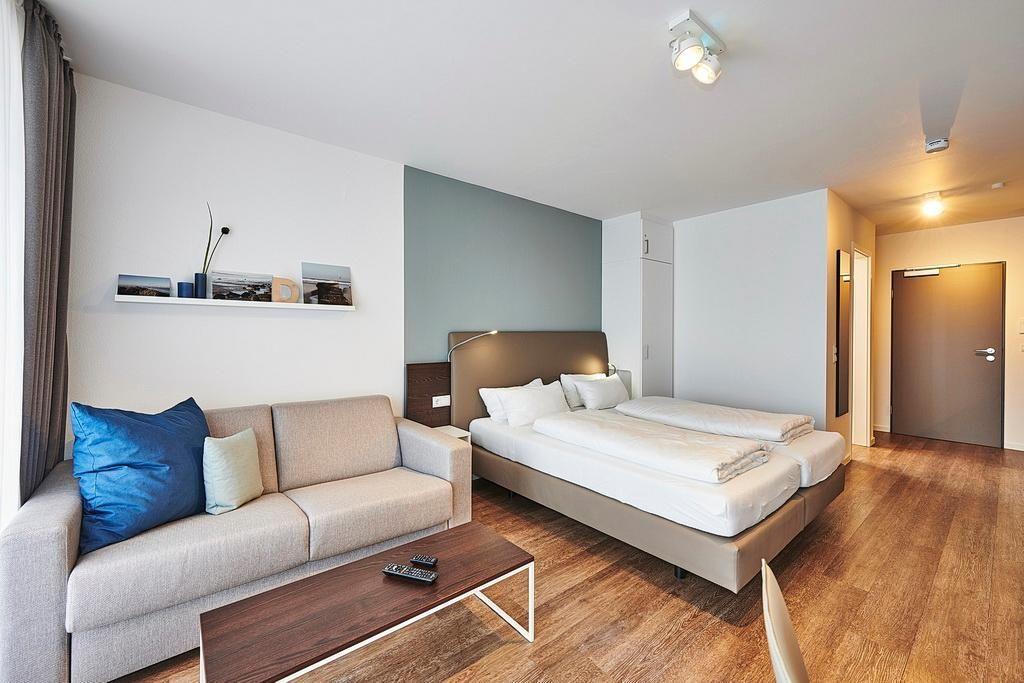 Modernes 1-Zimmer-Apartment mit Balkon nahe der Nordsee und kostenfreiem Zugang zu Schwimmbad und Sauna.