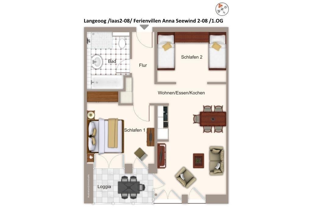 Die moderne und helle Ferienwohnung befindet sich in West-Lage im ersten Obergeschoss der Apartmentvilla Anna See, im Langeooger Ortszentrum, an der Barkhausenstraße gelegen. Der weitläufige Sandstrand und die Promenade sind nur 300 Meter entfernt. In der unmittelbaren Umgebung findet ihr zahlreiche Einkaufsmöglichkeiten, Restaurants und Cafés sowie Freizeitangebote wie z.B. das beliebte Meerwasser-Erlebnisbad, den Golfclub und die Kitesurfschule.