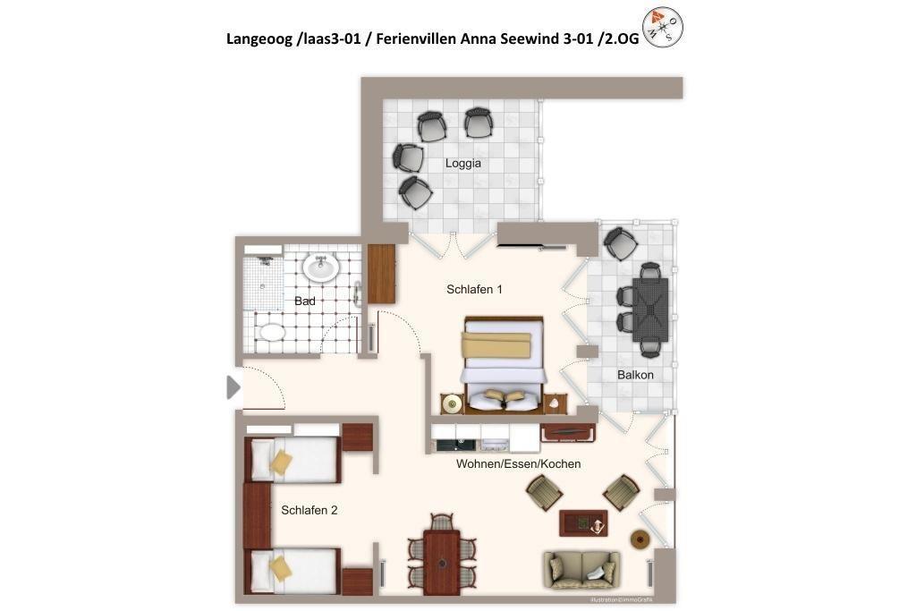 Die moderne und helle Ferienwohnung befindet sich in Süd-Lage im zweiten Obergeschoss der Apartmentvilla Anna See, im Langeooger Ortszentrum, an der Barkhausenstraße gelegen. Der weitläufige Sandstrand und die Promenade sind nur 300 Meter entfernt. In der unmittelbaren Umgebung findet ihr zahlreiche Einkaufsmöglichkeiten, Restaurants und Cafés sowie Freizeitangebote wie z.B. das beliebte Meerwasser-Erlebnisbad, den Golfclub und die Kitesurfschule.