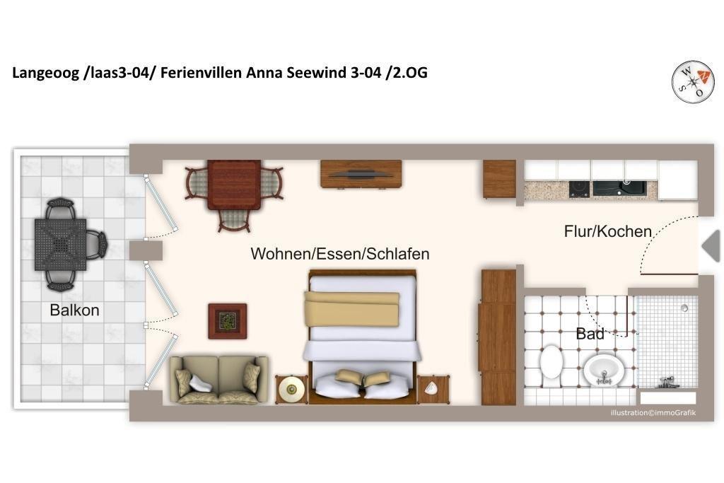 Modernes 1-Zimmer-Apartment in Langeoog nahe Strand mit sonnigem Balkon und Sauna im Haus.