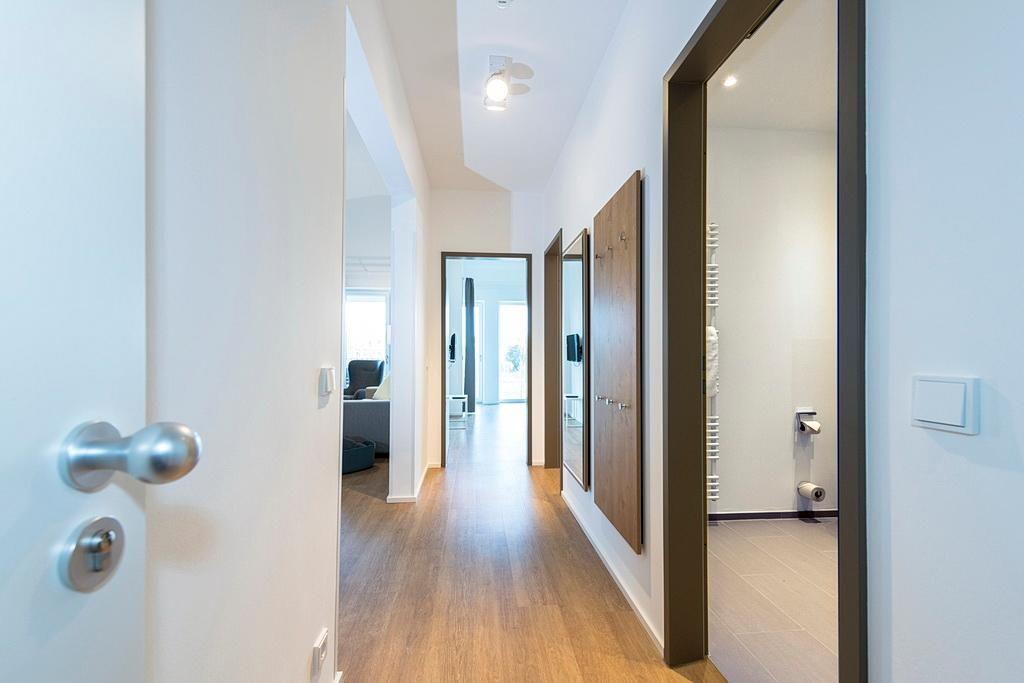 Modernes Familien-Apartment nahe Strand mit großer Loggia, zwei Bädern und Sauna im Haus.