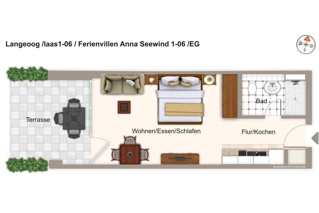 Das 33 m² große 1-Zimmer Apartment ist für bis zu 3 Personen geeignet. Besonders hervorzuheben ist die Terrasse in sonnenreicher Westlage. Hier können Sie sonnige und erholsame Urlaubstage und laue Sommerabende verleben.