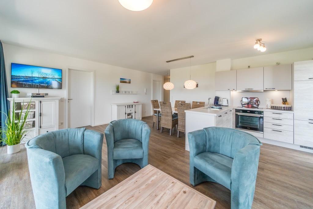 Modernes Premiumapartment am Deich mit Sauna, großem Balkon und Nordseeblick.