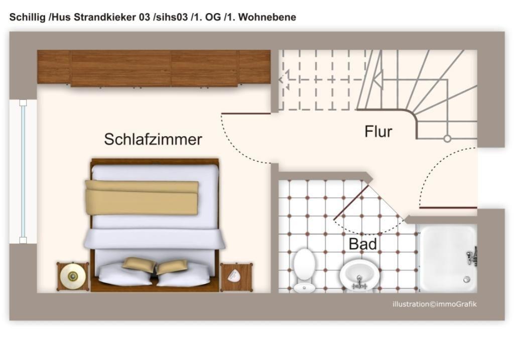 Die 75 m² große 3-Zimmer-Maisonette-Ferienwohnung ist für bis zu 6 Personen geeignet. Besonders hervorzuheben sind die strandnahe Lage und der Meerblick aus dem Wohnzimmer und vom Balkon der gemütlichen Wohnung.