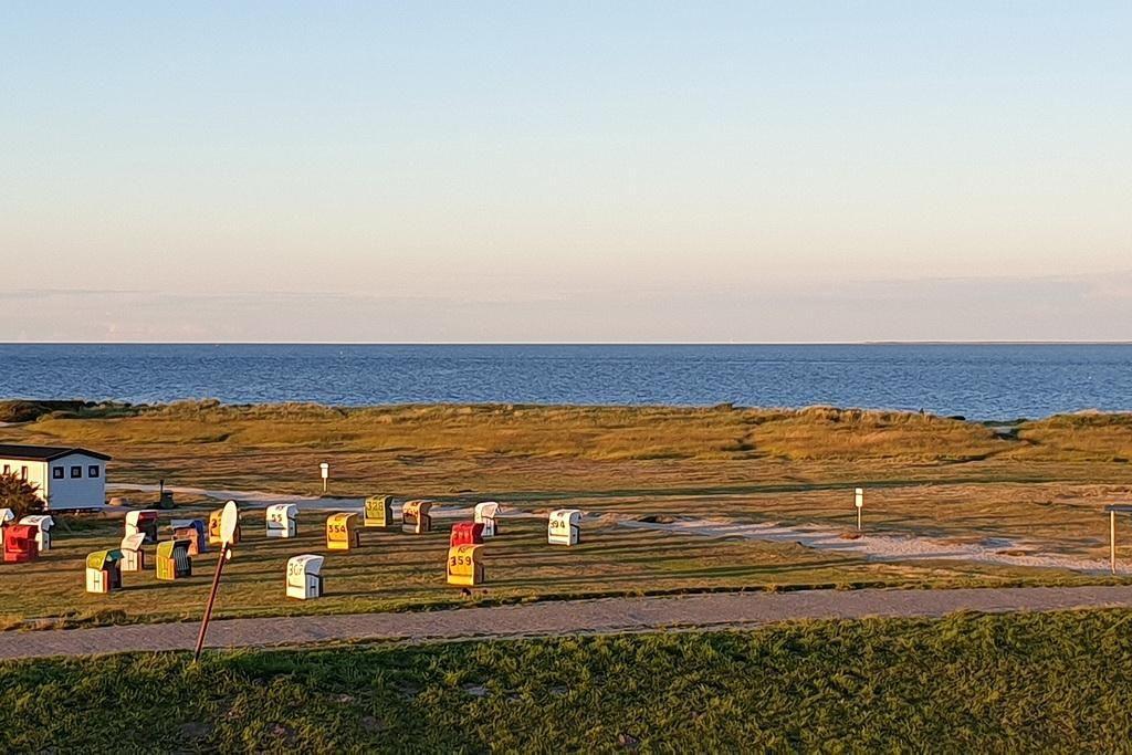 Charmantes Maisonette-Apartment mit Meerblick und Balkon in Deichlage, nur 100 Meter vom Strand entfernt.