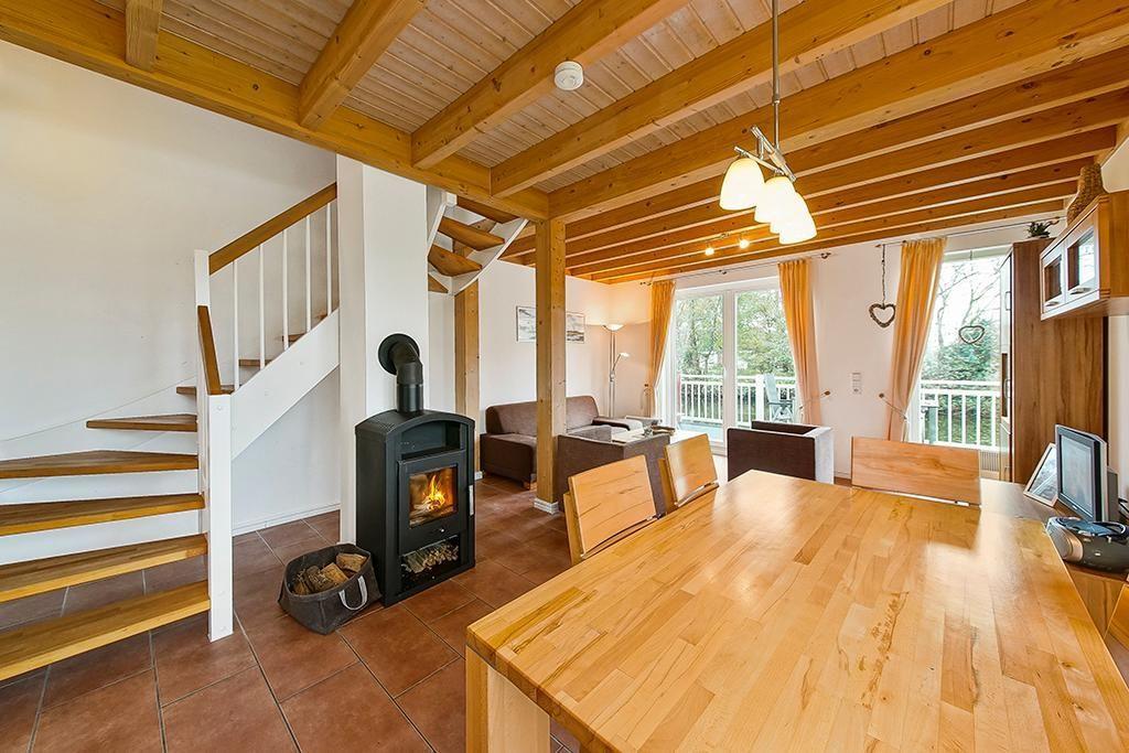 Das gehobene und liebevoll eingerichtete Ferienhaus bietet euch eine voll ausgestattete offene Küche mit Backofen, Geschirrspüler, Mikrowelle, Kühlschrank mit Tiefkühlfach und Kaffeemaschine. Das Ferienhaus verfügt des Weiteren über eine eigene Waschmaschine. In den Wohnbereichen erwartet euch ein Kaminofen (Kaminholz ist nicht inbegriffen), jeweils ein Flatscreen-TV, Hi-Fi Anlage, DVD Player, Bücher, DVDs sowie Gesellschaftsspiele. Auf der Galerie findet ihr eine "Schatzkiste" für die Kleinen mit Duplo Steinen. Ein Kinderhochstuhl steht kostenlos zur Verfügung und ein Kinderbett könnt ihr auf Wunsch entgeltlich dazu buchen. Alle Schlafzimmer können verdunkelt werden.