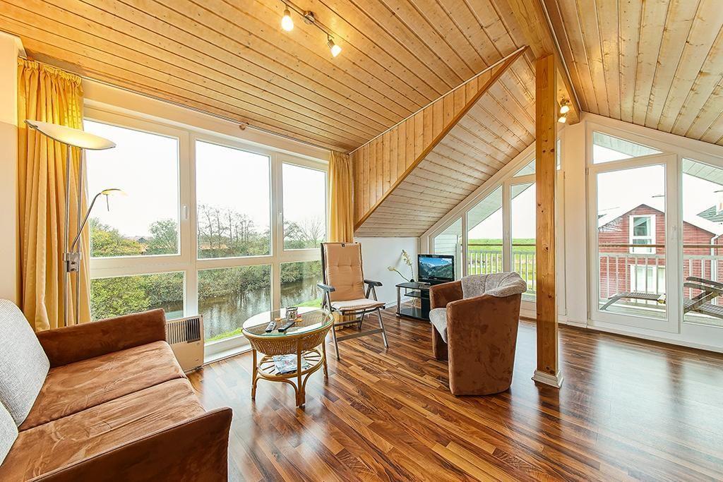 Top-Ferienhaus am Deich mit Terrasse am Wasser, zwei Balkonen, Sauna & Kaminofen