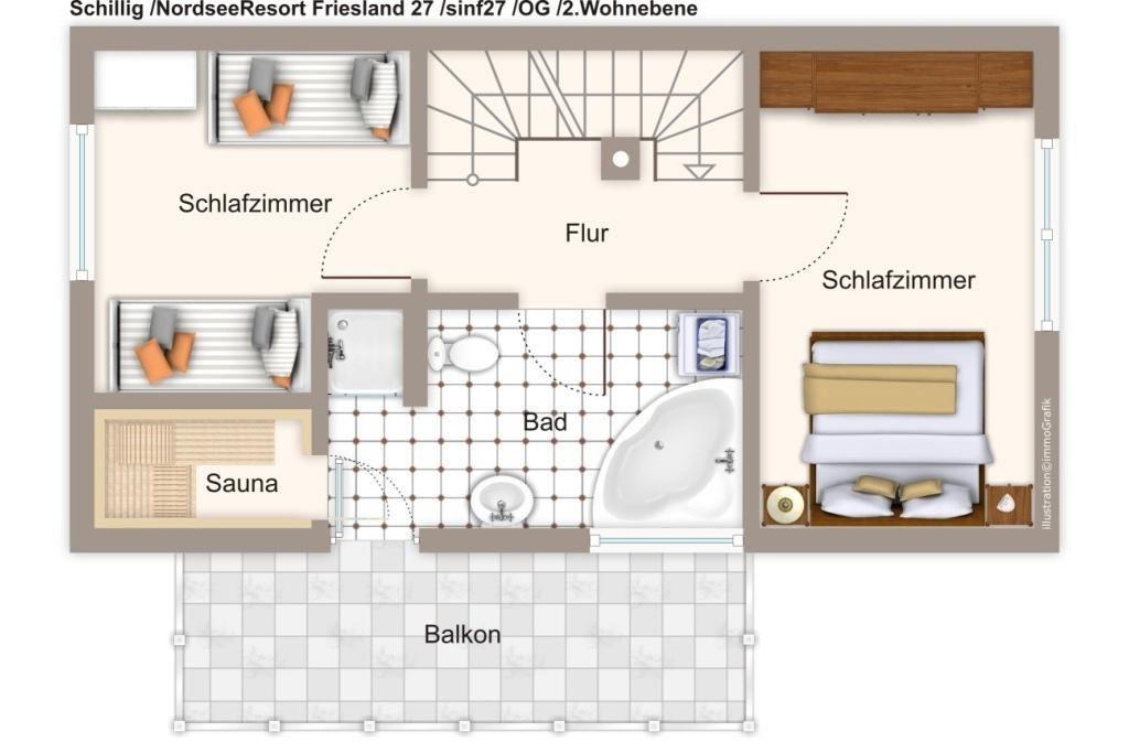 Das familienfreundliche Feriendomizil verfügt über kostenfreies WLAN und besteht aus 5 Zimmern: zwei Schlafzimmer mit jeweils einem Doppelbett, ein Schlafzimmer mit zwei Einzelbetten, ein Badezimmer mit Dusche, Badewanne, Sauna und eigenem Balkon, ein Gäste-WC sowie einem überdachten Balkon mit tollem Ausblick Richtung Nordsee. Die einmalig-schön gelegenen Terrasse am Wasserlauf, der sogenannten Graft, rundet das Angebot ab.