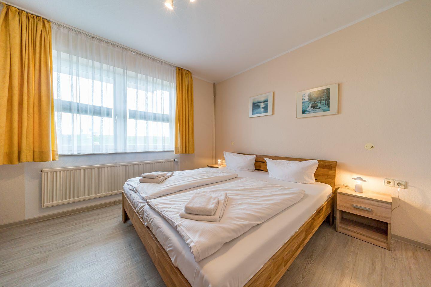 Die Maisonette-Wohnung erstreckt sich über die 1. und 2. Etage der Ferienanlage und befindet sich auf Stelzen, über den Parkplätzen. Eure Umgebung bietet das Beste aus beiden Welten: kleine Läden, Cafés und Restaurants zum Genießen – und dazu Spaß am Wasserskilift Hooksiel.