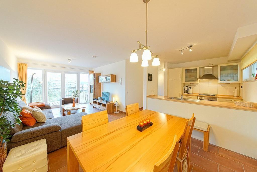 Die harmonisch eingerichtete und 77 qm große 3- Zimmer Ferienwohnung mit Balkon, Sauna und Whirlbadewanne verfügt über Meerblick und ist für bis zu 4 Personen geeignet
