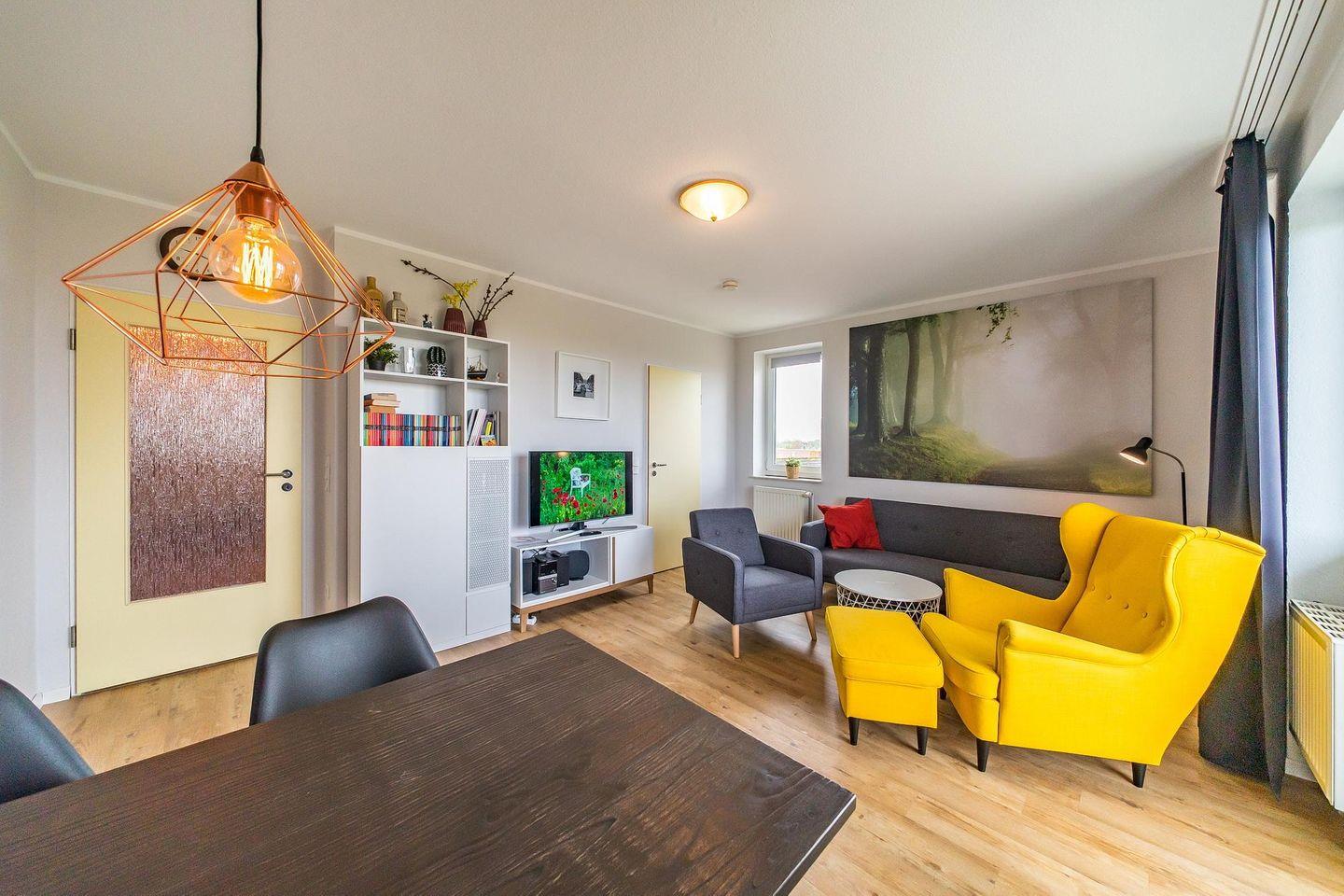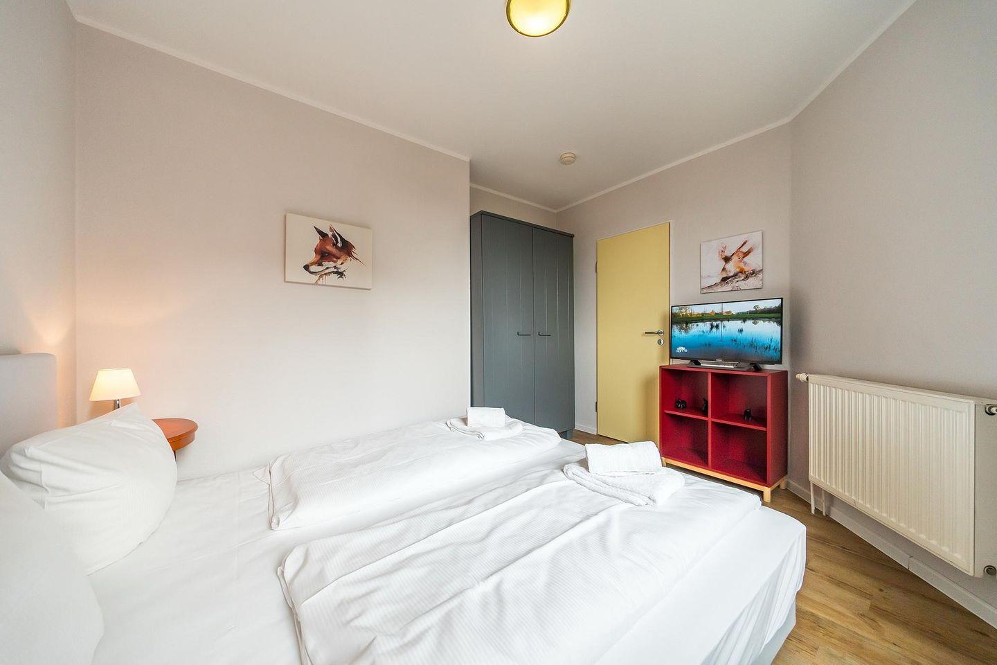 Im Turm der Ferienanlage gelegen, befindet sich das Apartment im 4. Obergeschoss. In eurer unmittelbaren Umgebung laden kleine Geschäfte, gemütliche Cafés und Restaurants zum Bummeln und Verweilen ein.