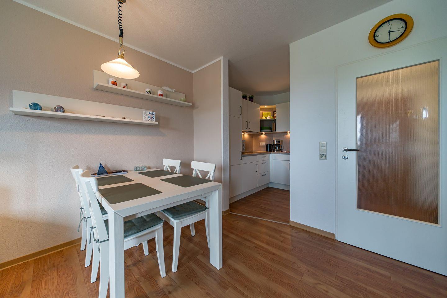 Die 39 m² große 2-Zimmer-Ferienwohnung im beliebten Hus Jadekieker ist ideal für bis zu 4 Personen. Besonders hervorzuheben sind die strandnahe Lage und der herrliche Weitblick über die Felder, den ihr vom Balkon der gemütlichen Wohnung genießt.